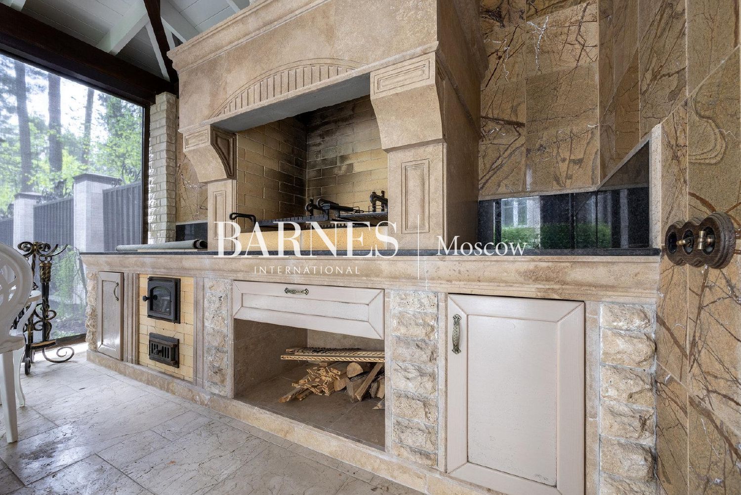 закрытая зона барбекю с беседкой, мангалом и обеденной группой;