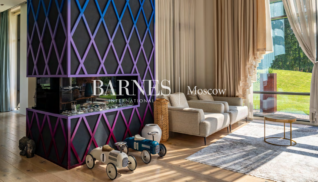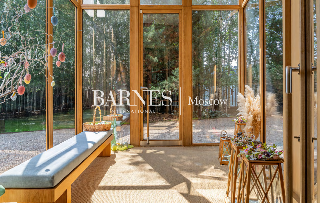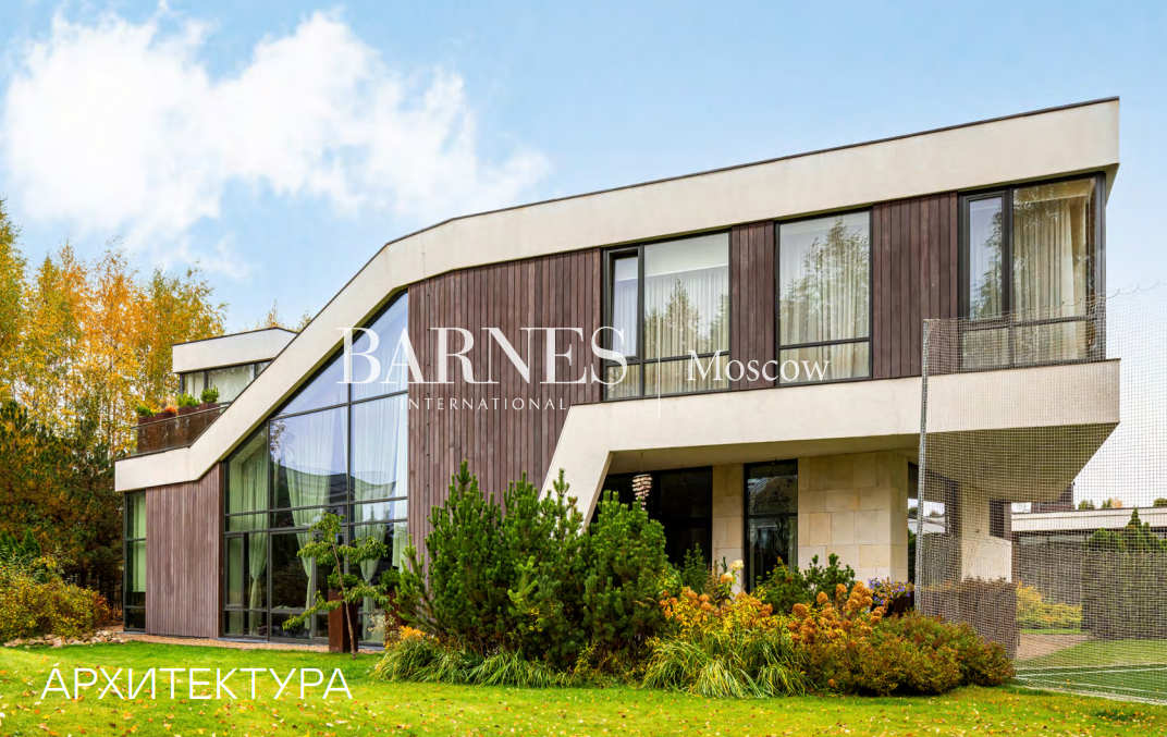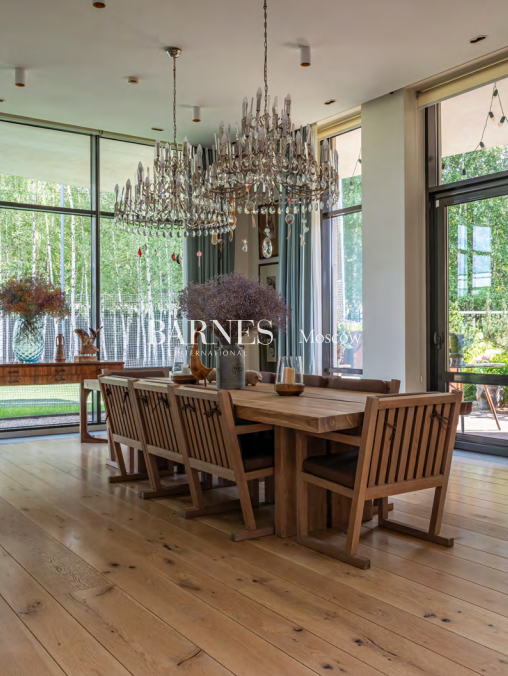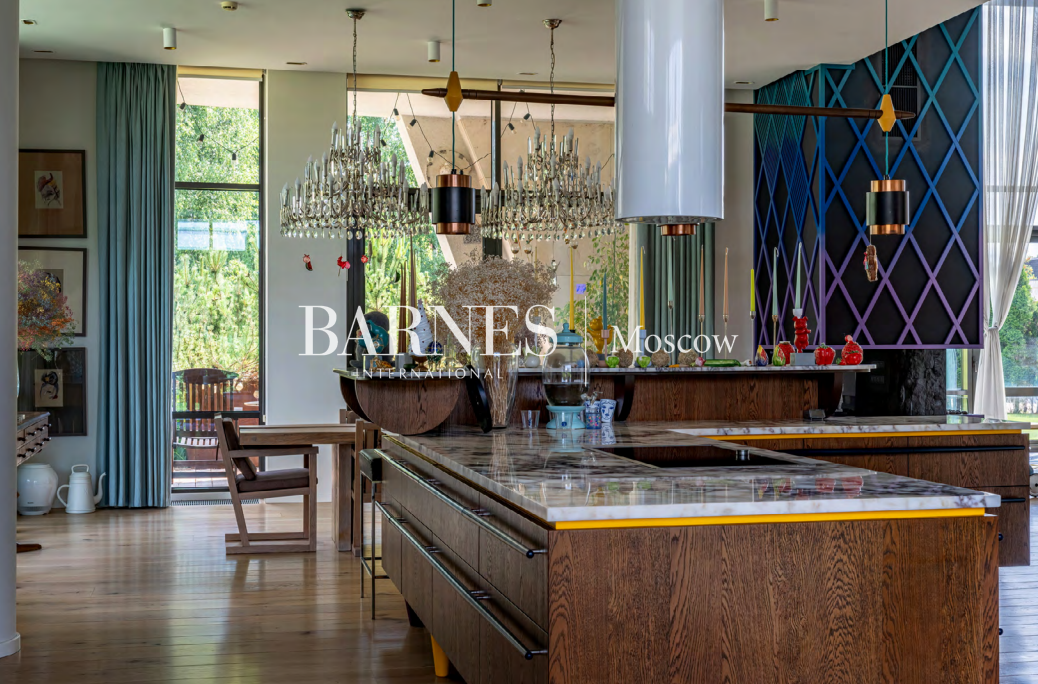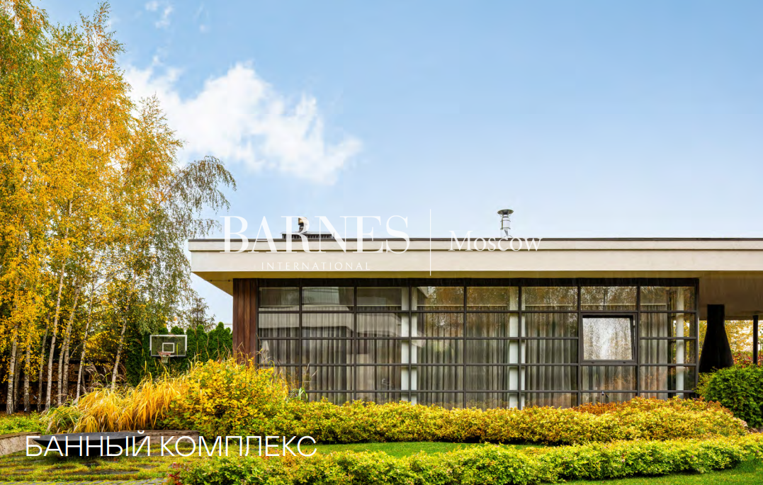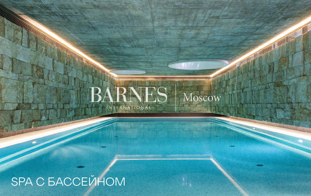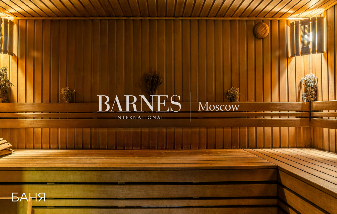 5 спален, 6 с/у, дровяной и био камины, библиотека, тренажерный зал, SPA с бассейном, банный комплекс 615,9 кв.м., купель, 2 открытые террасы, профессиональная кухня, футбольное поле, теплый гараж, гостевая парковка, автомойка, дом персонала 207,7 кв.м.