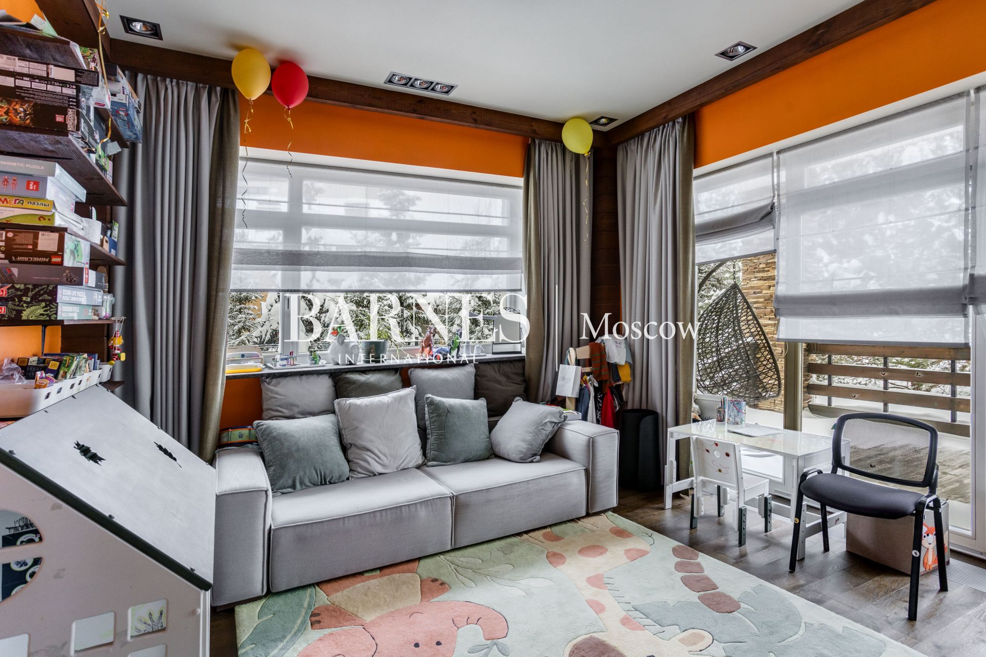 Предлагается к продаже исключительный дом в стиле настоящего альпийского шале — редкий, очень стильный и абсолютно уникальный объект на рынке элитной загородной недвижимости. Это не типовой проект, а воплощение характера, тепла и статуса в престижном поселке Миллениум Парк.