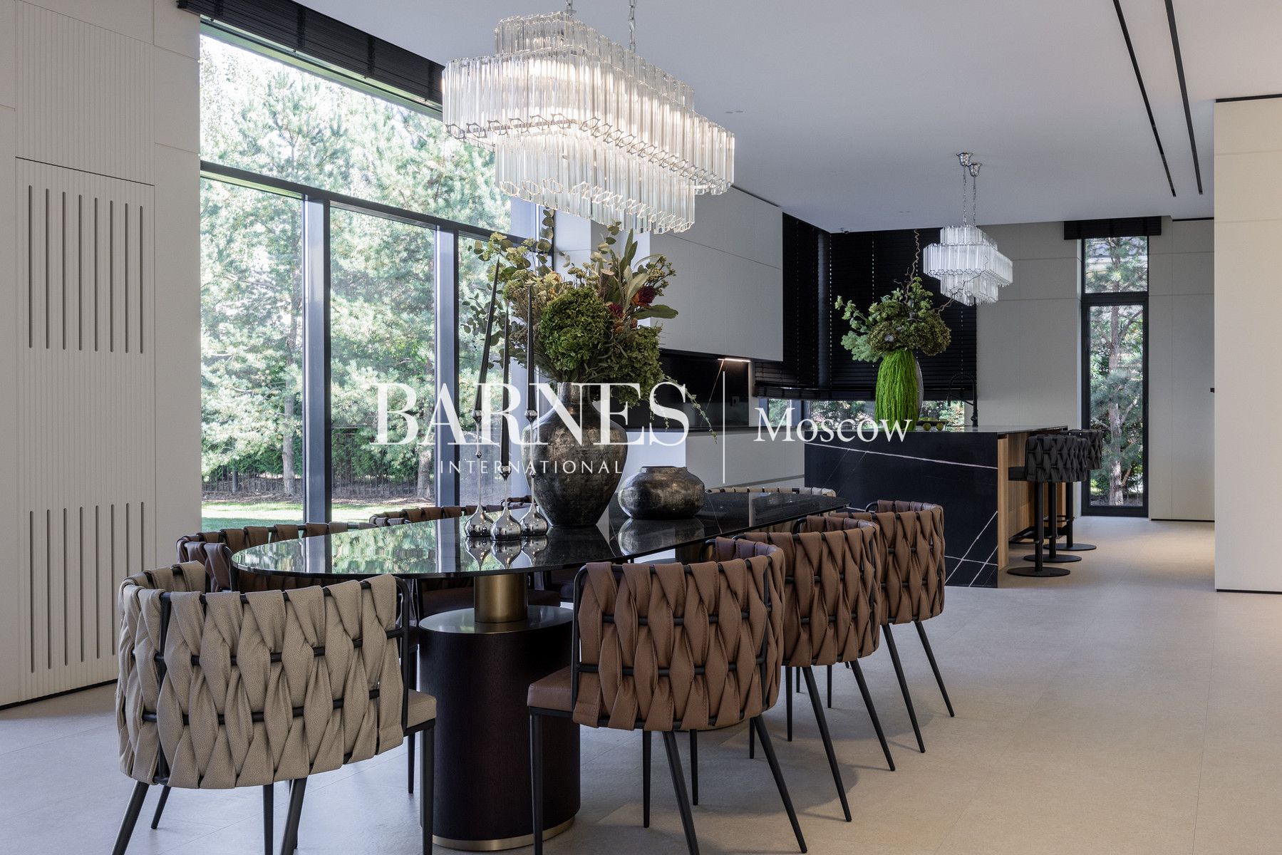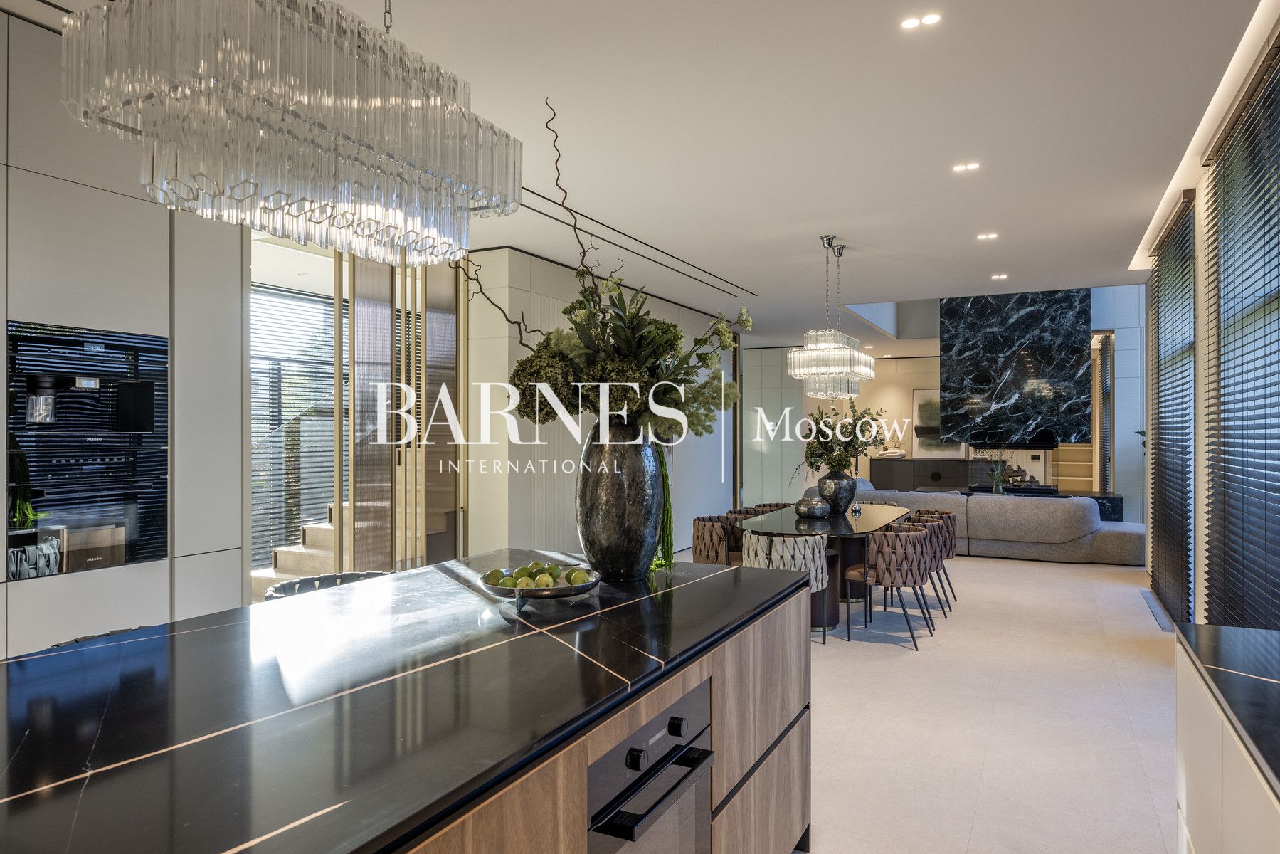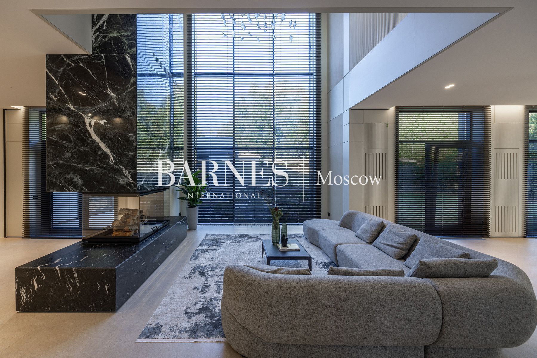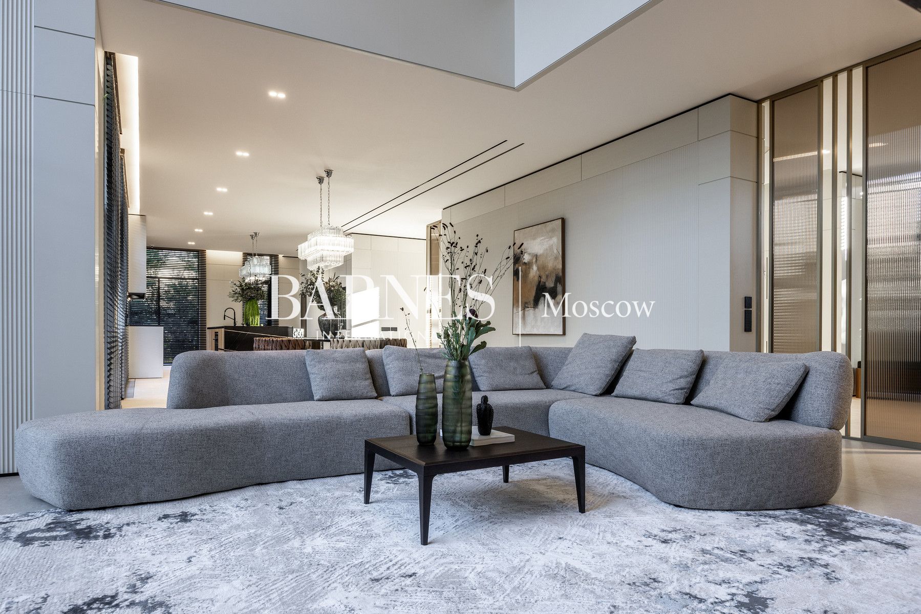 Отделка выполнена из качественных натуральных материалов с учетом современных инженерных решений: c панорамным остеклением, высокими потолками, гостиной со вторым светом.