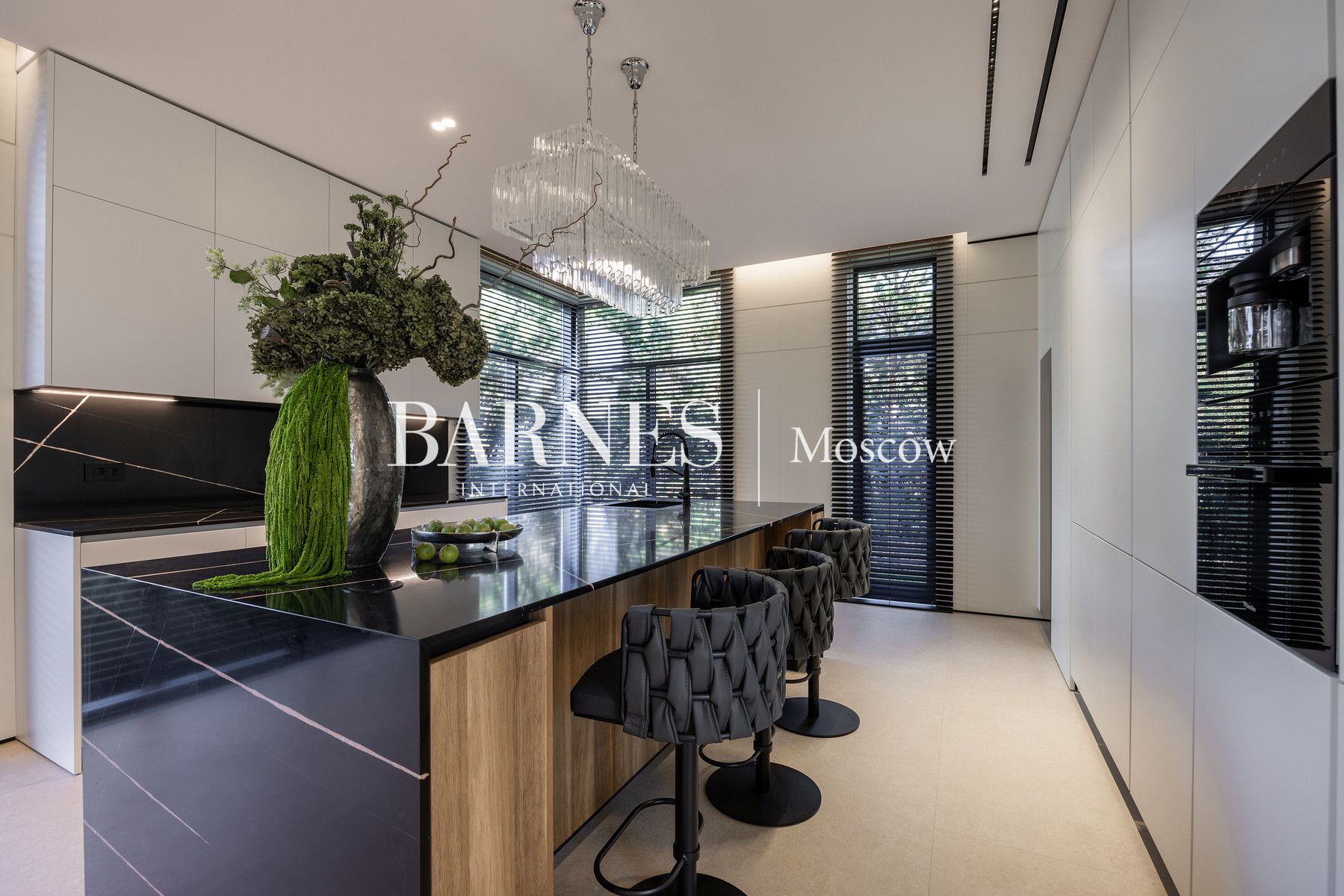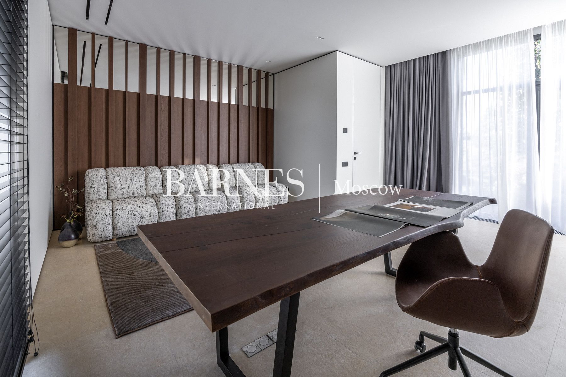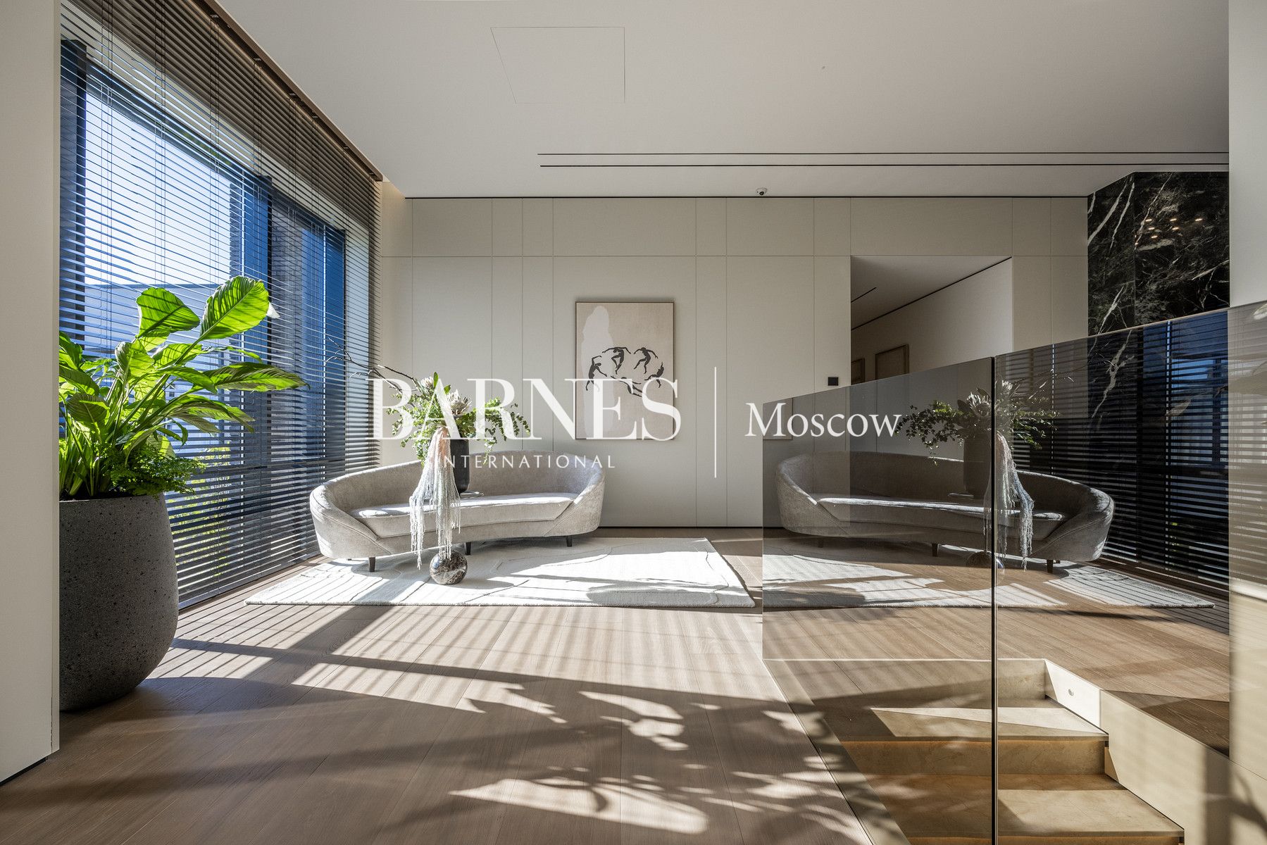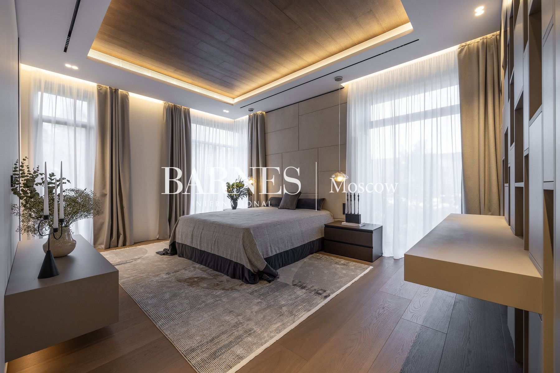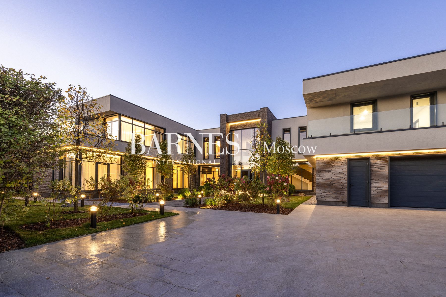 Отделка выполнена из качественных натуральных материалов с учетом современных инженерных решений: c панорамным остеклением, высокими потолками, гостиной со вторым светом.