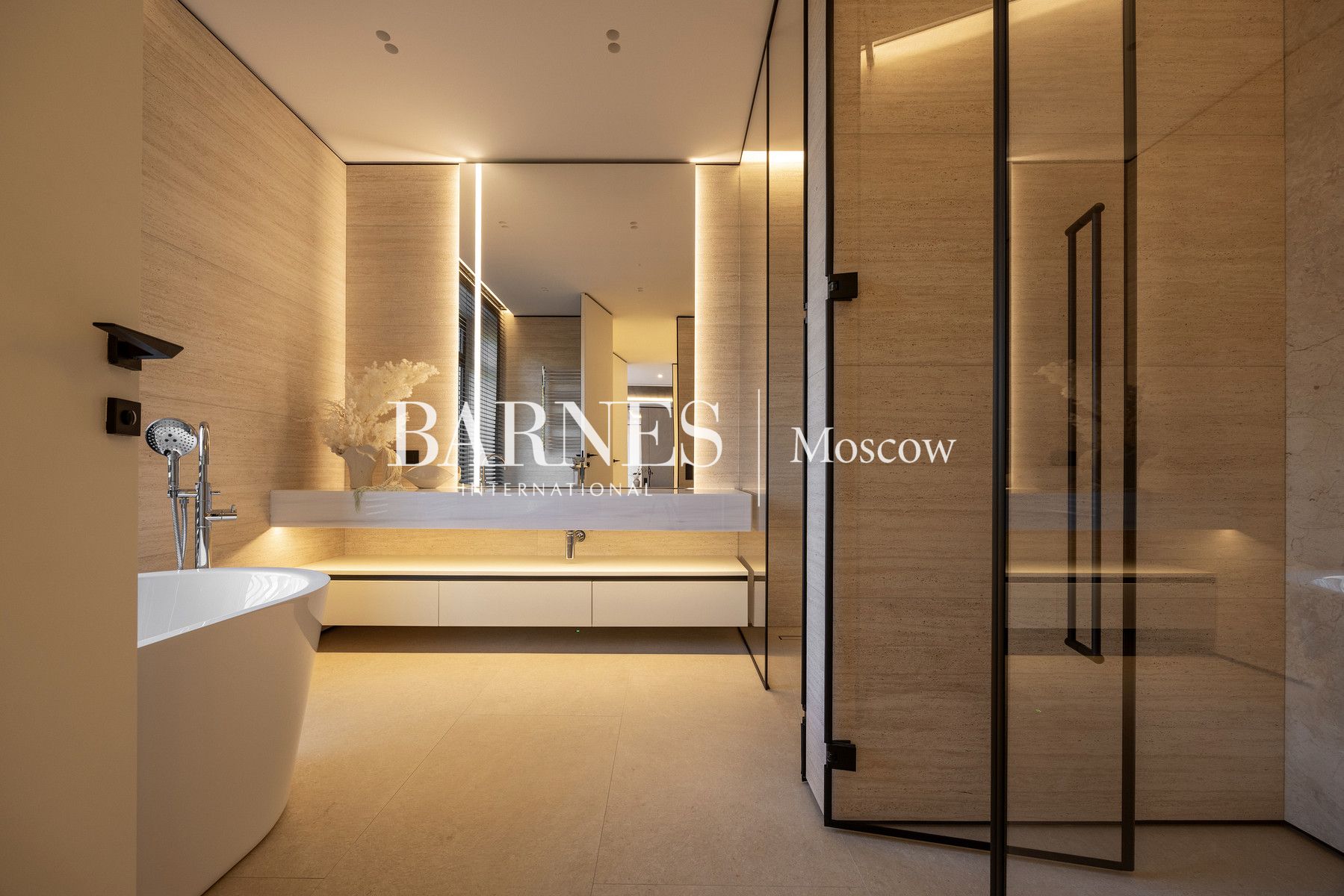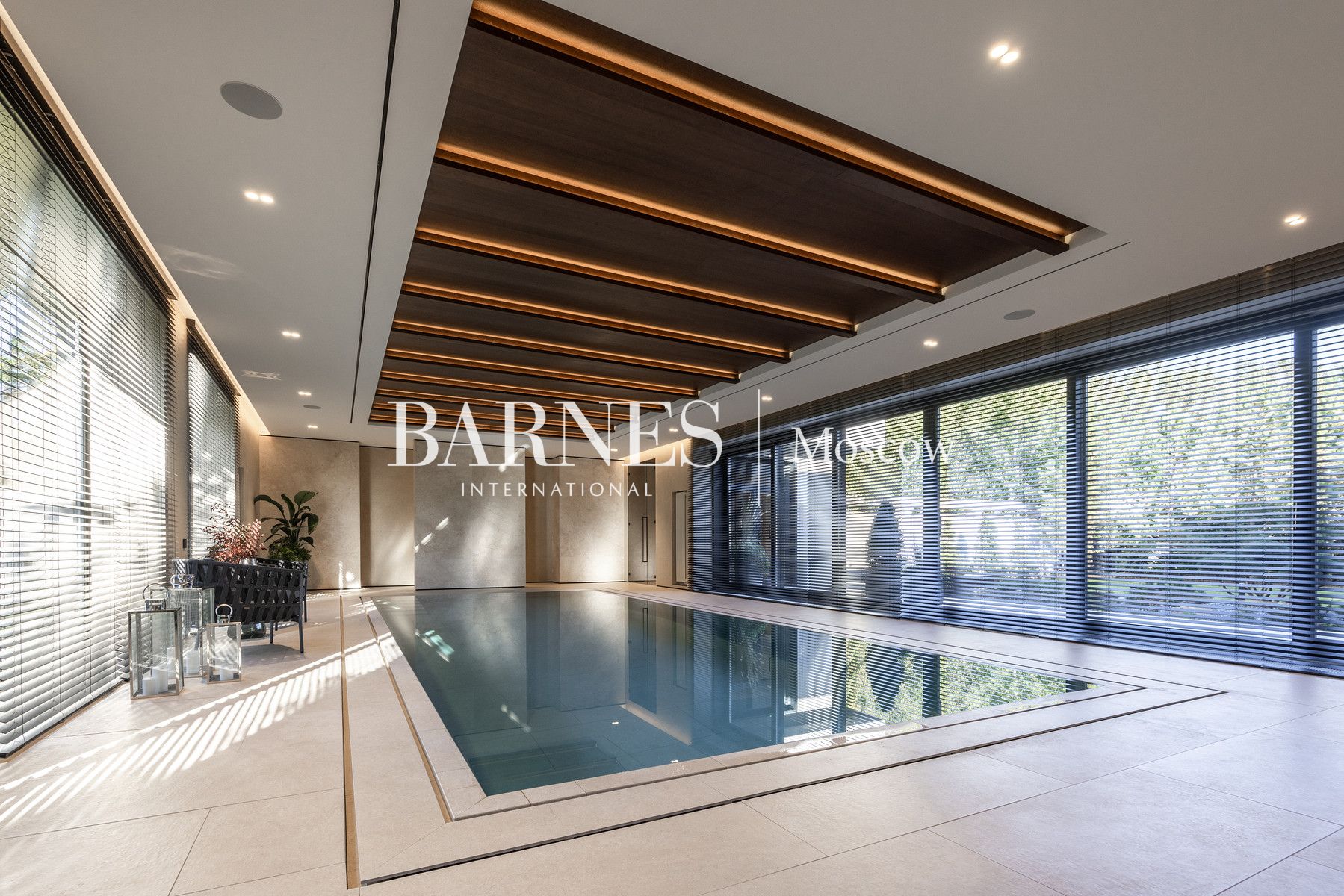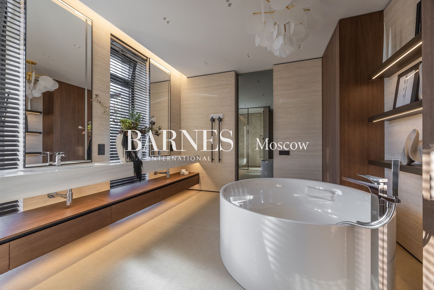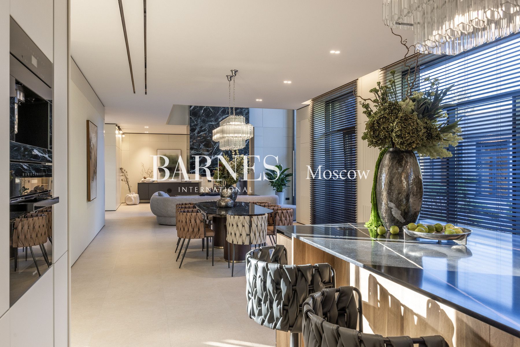 Отделка выполнена из качественных натуральных материалов с учетом современных инженерных решений: c панорамным остеклением, высокими потолками, гостиной со вторым светом.