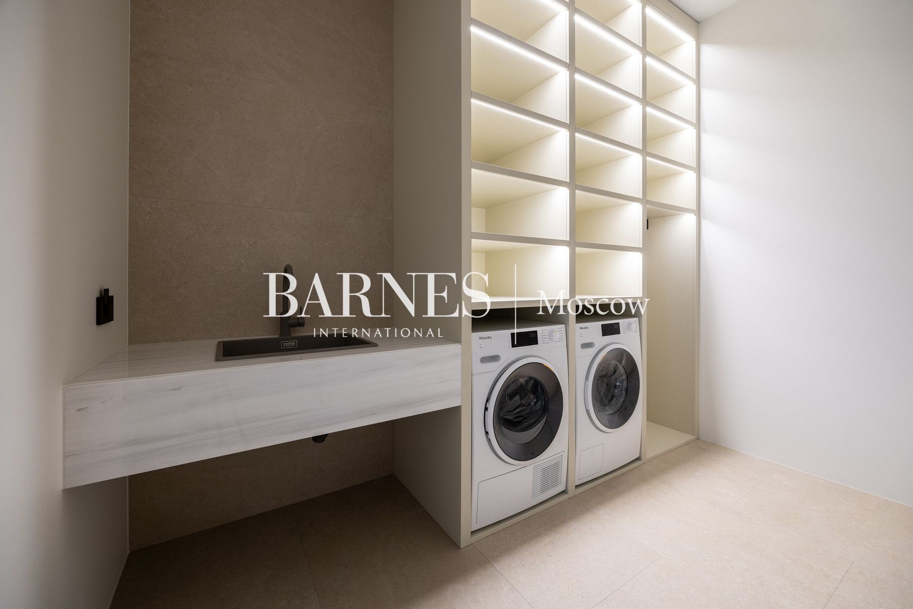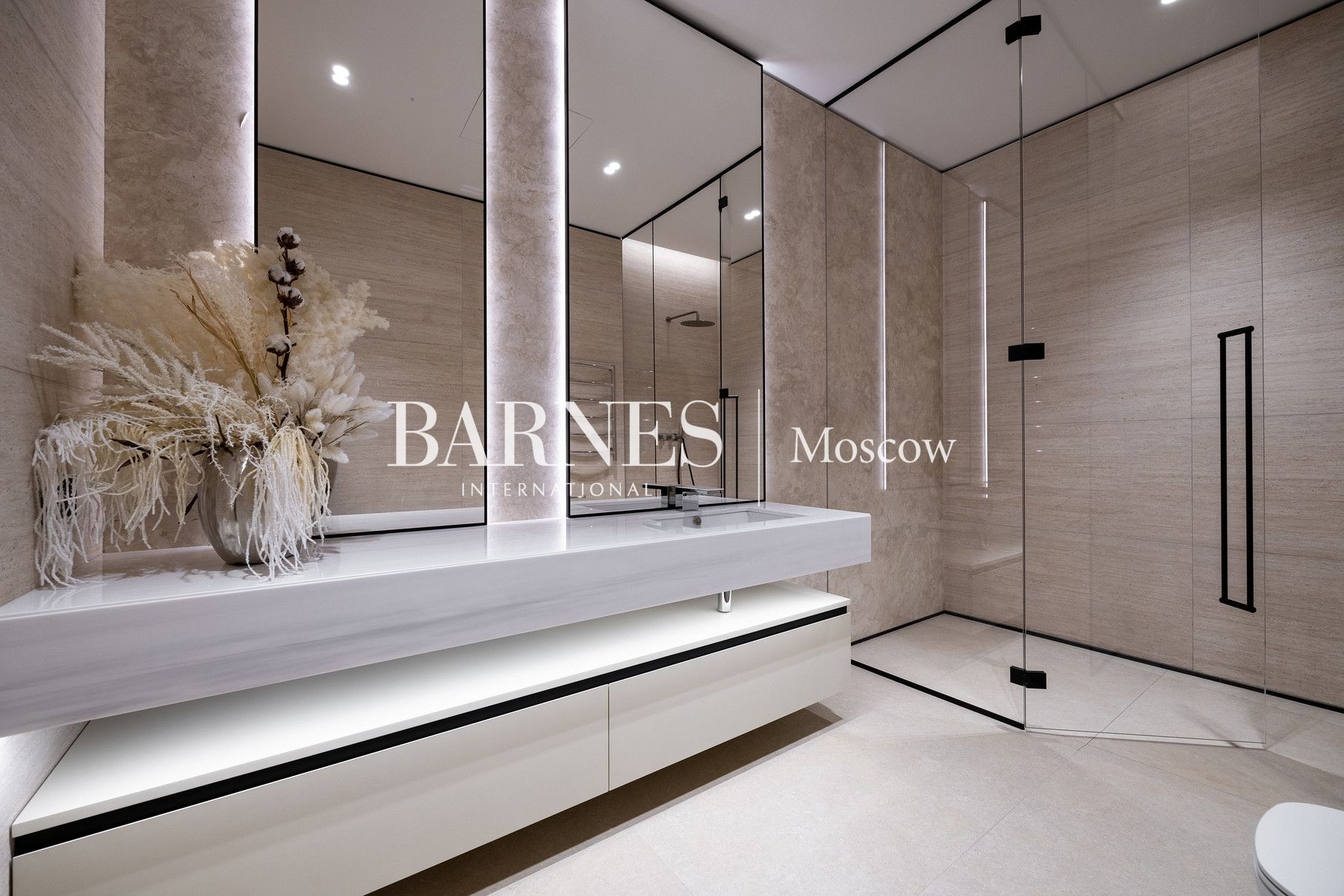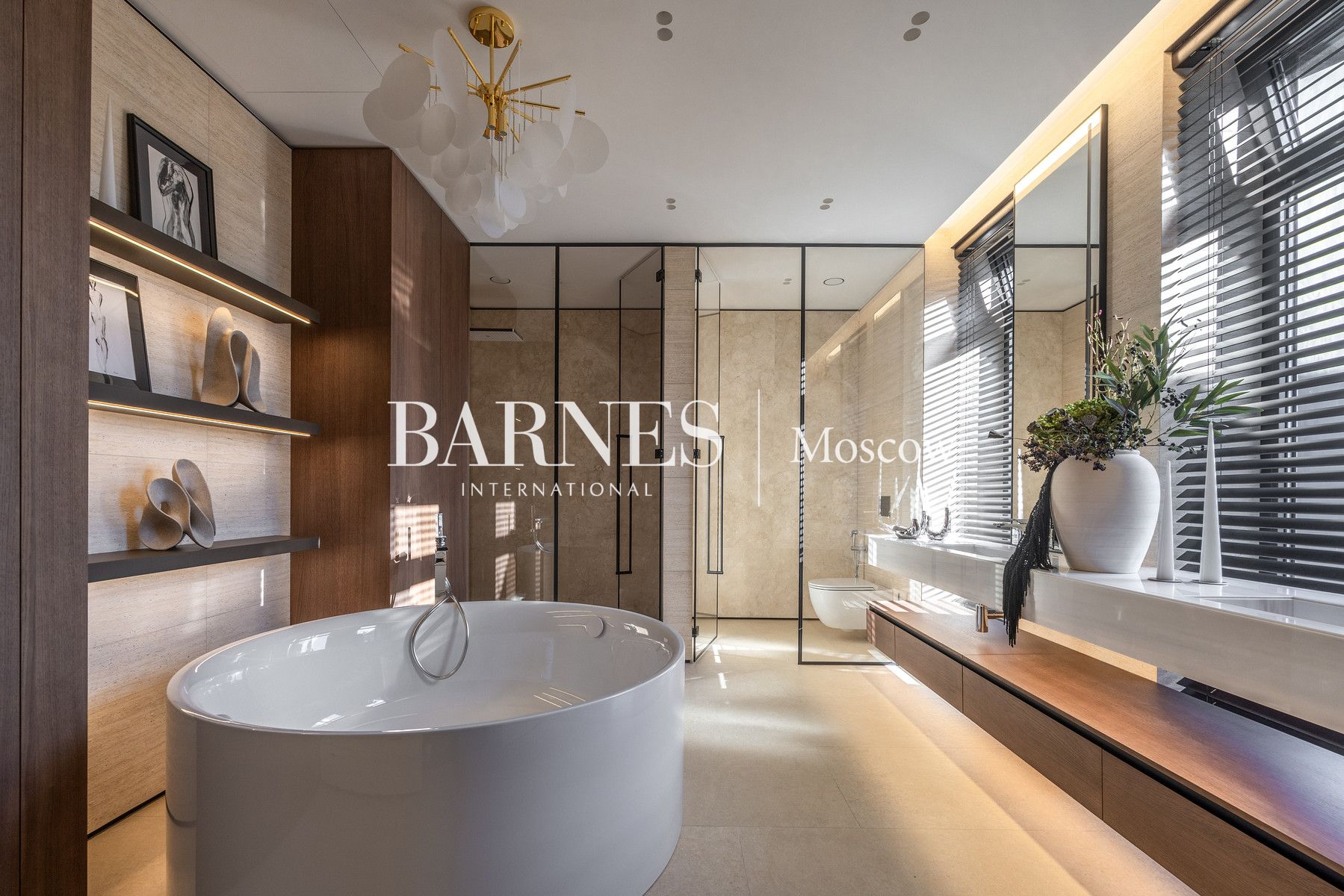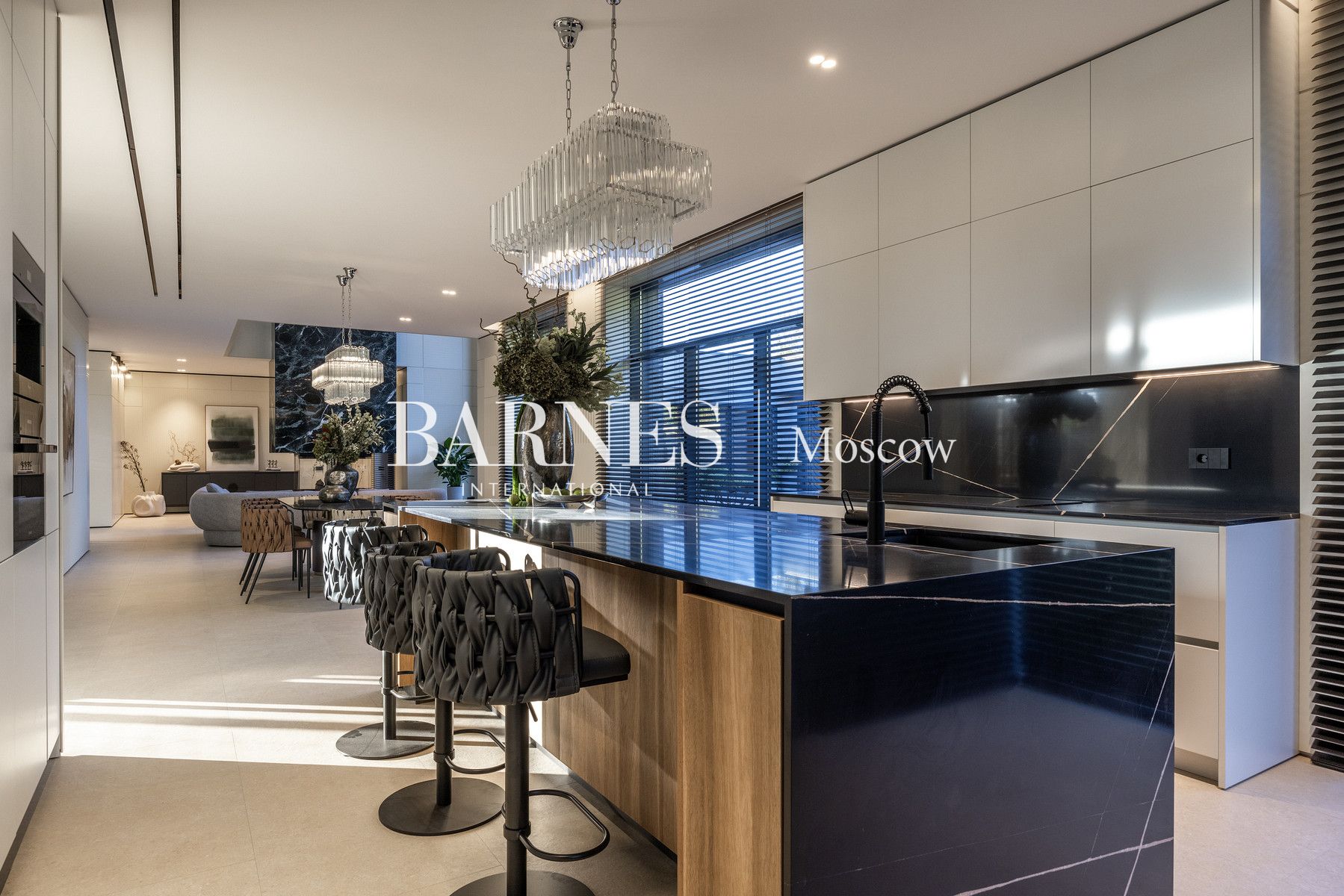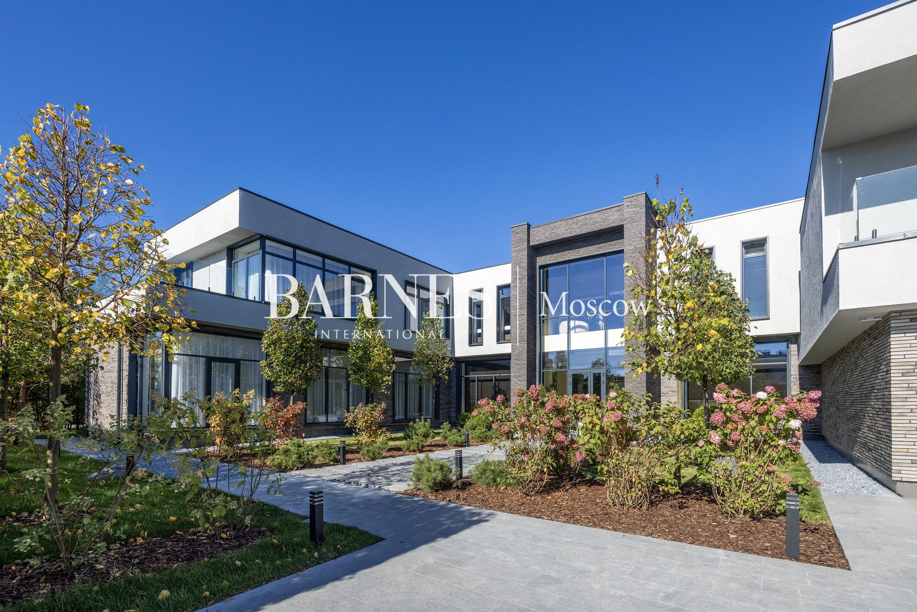 Отделка выполнена из качественных натуральных материалов с учетом современных инженерных решений: c панорамным остеклением, высокими потолками, гостиной со вторым светом.