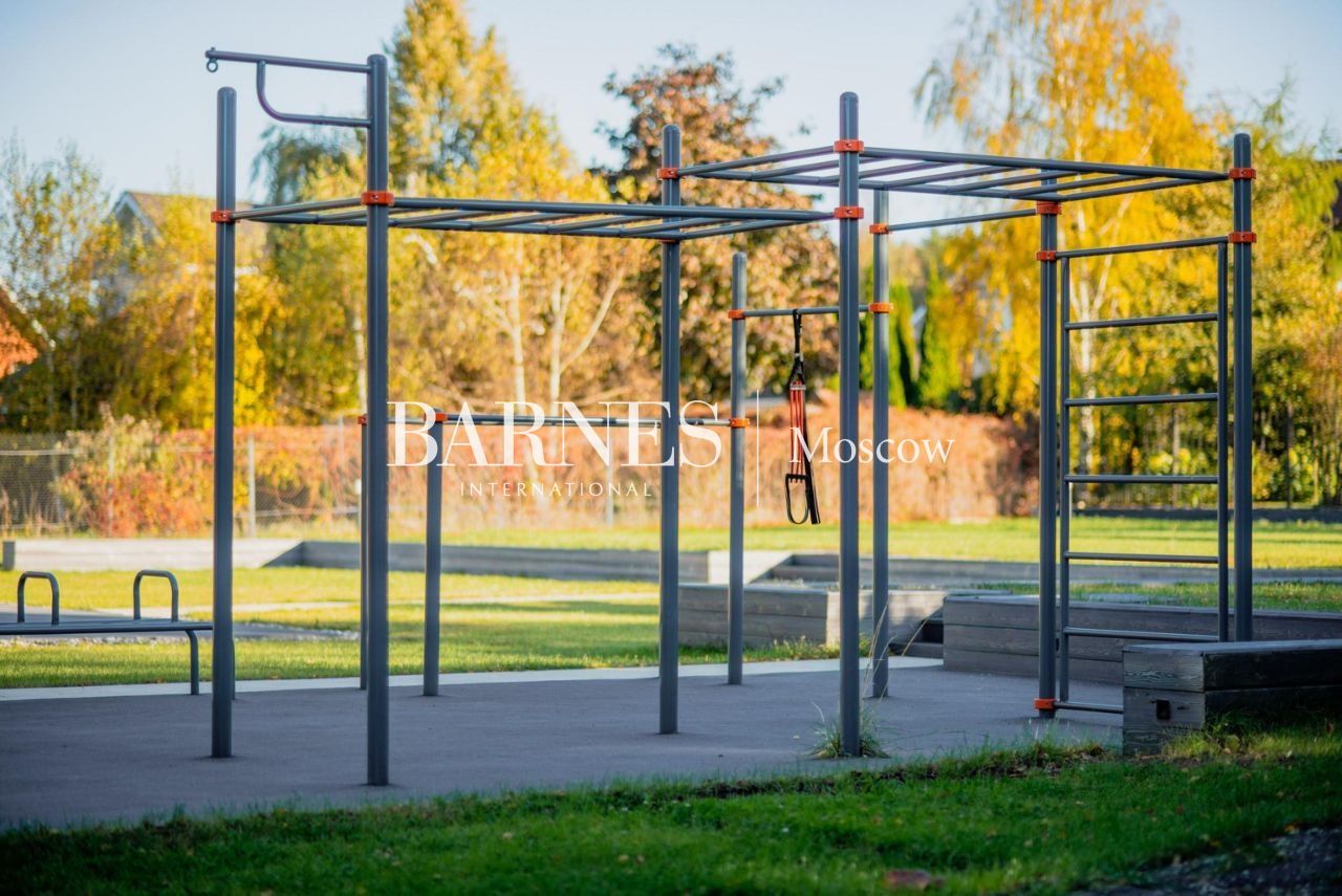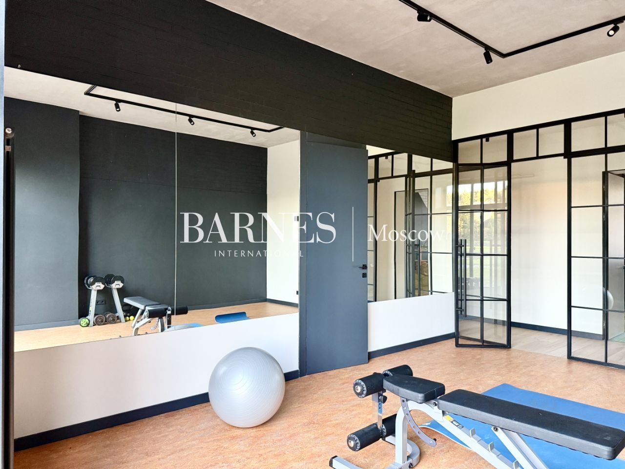 1-ый этаж: большой холл с двумя гардеробными, с/у, кухня-столовая с выходом на крытую террасу, кладовая, каминный зал с выходом на террасу, СПА-зона (сауна, душевая, комната отдыха, с/у); спортивный зал, комната свободного назначения (игровая/спальня), гараж на 2 м/м, котельная, мастерская;