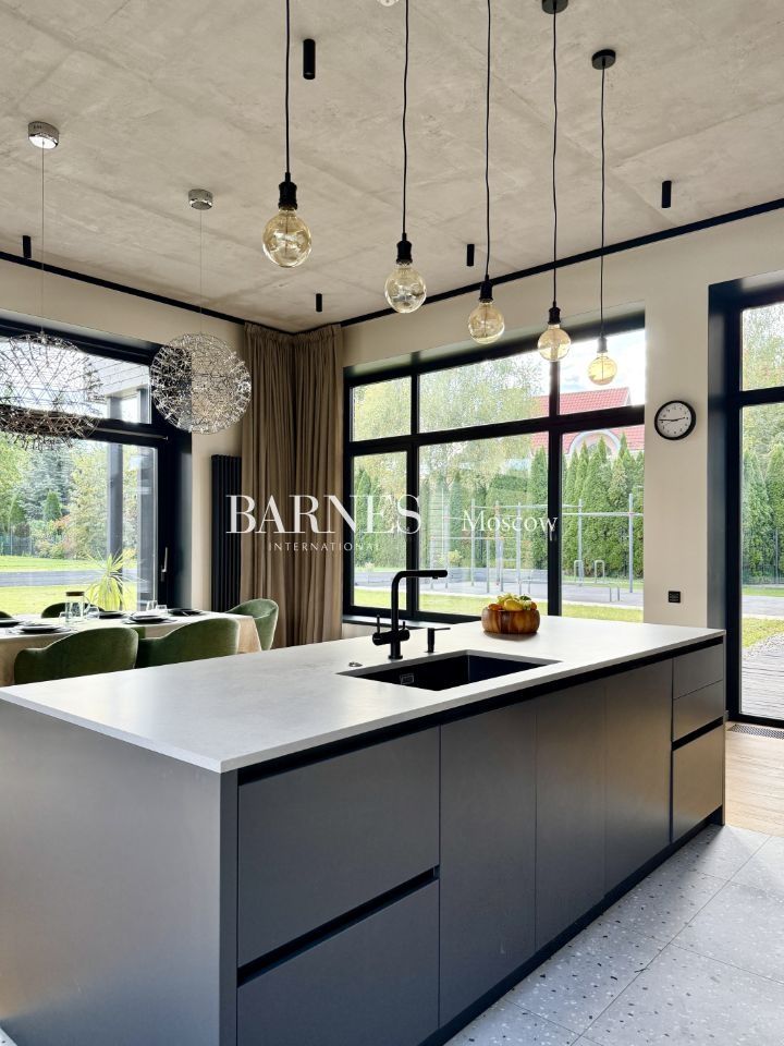Коммуникации все центральные: электричество 25 кВт, магистральный газ, канализация, водоснабжение, ливневая канализация, интернет, противопожарная и охранная сигнализации, видеонаблюдение по периметру дома и участка.