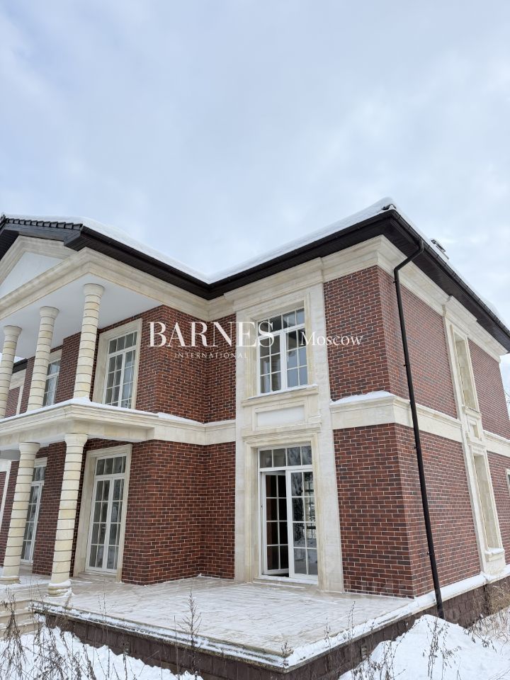 Дом под отделку в неоклассическом стиле. Построен из кирпича с монолитными перекрытиями, облицован клинкерным кирпичом и травертином, фасады с утеплением.