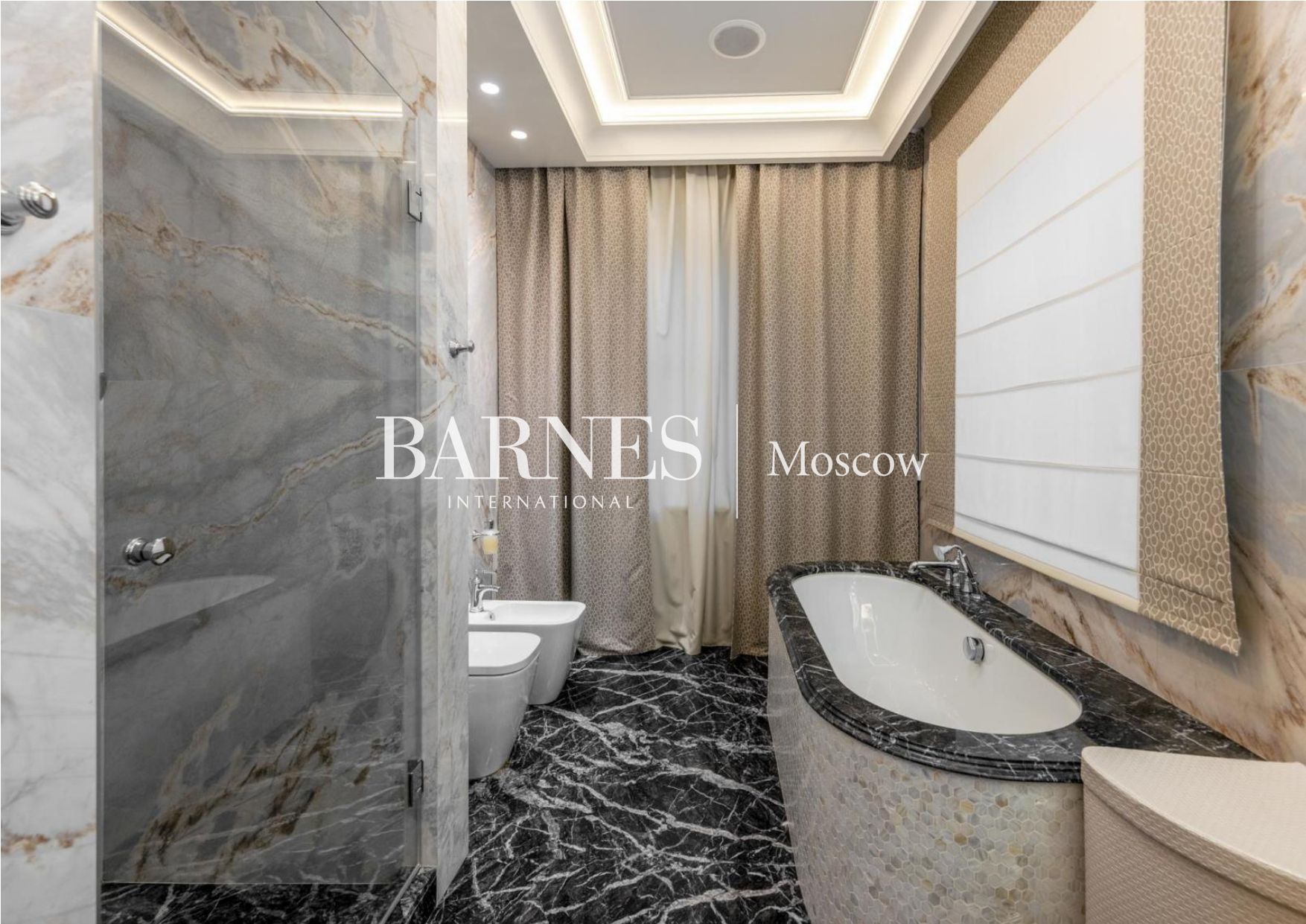 Дом воплощает эстетику современной американской классики, где благородство натурального камня и дерева встречается с легкостью панорамного остекления. Просторные интерьеры с готовой отделкой и мебелью наполнены светом и ощущением свободы. Особый уют загородной жизни подчеркивает собственная баня, гармонично дополняющая ансамбль резиденции.