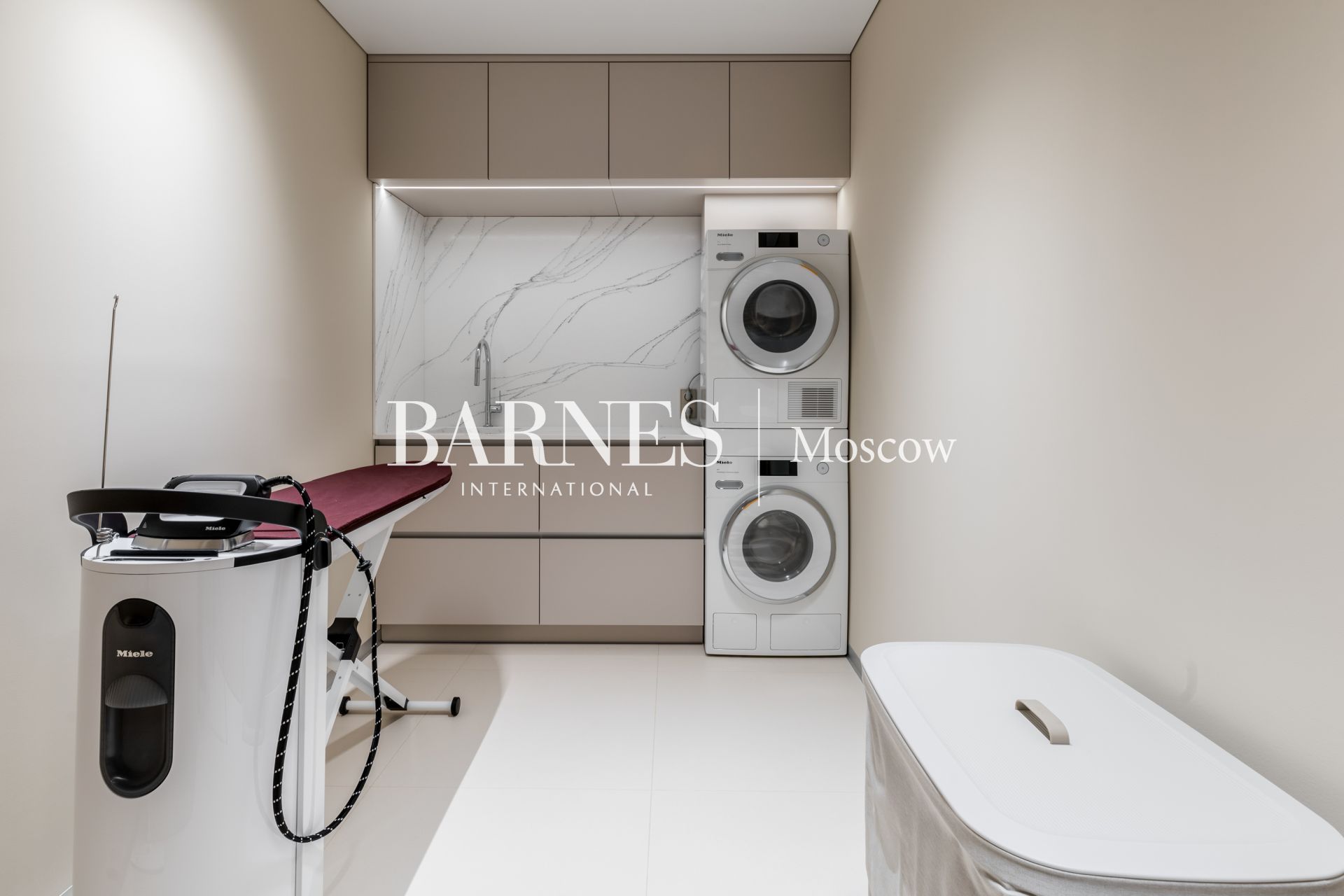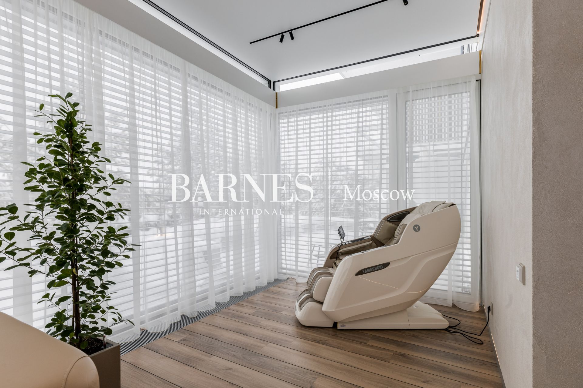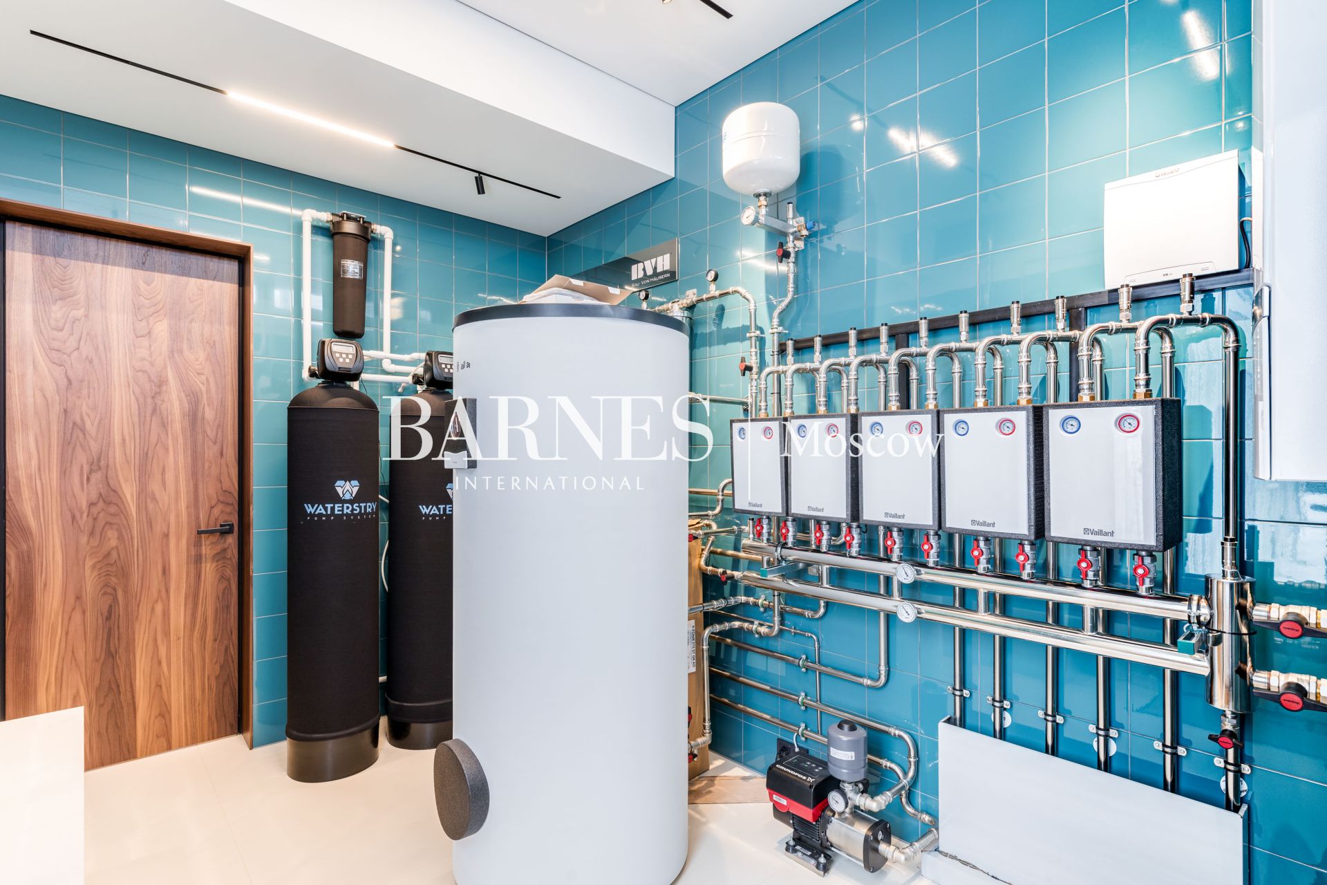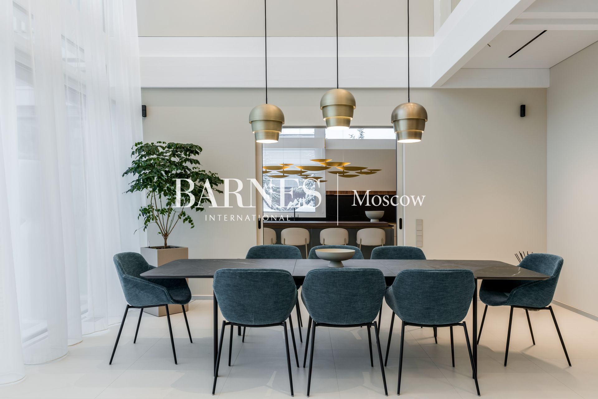 1 этаж: холл, гостиная со вторым светом и выходом на террасу, кухня-столовая зона, гостевая спальня, SPA-зона, фитнес-зона, 4 с/у, гардеробная, прачечная, техническое помещение, блок персонала, гараж.