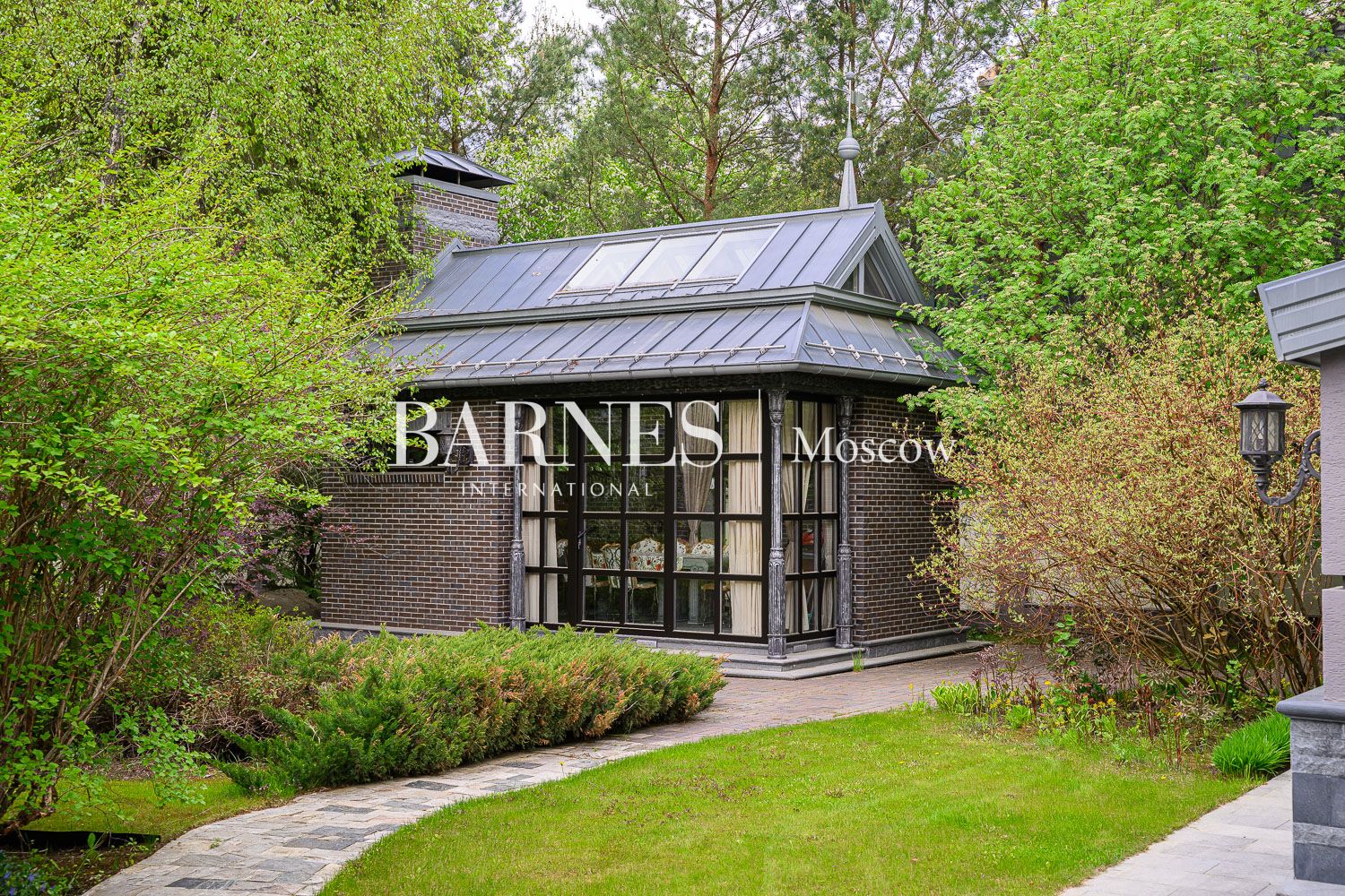 Гордость резиденции — эффектная СПА-зона с бассейном. Панорамное остекление позволяет наслаждаться видами на лес, создавая полное ощущение единства с природой во время отдыха. Дом расположен на величественном лесном участке 60 соток. Великолепный ландшафтный дизайн подчеркивает природную красоту соснового бора, а исключительная приватность позволяет забыть о близости мегаполиса.