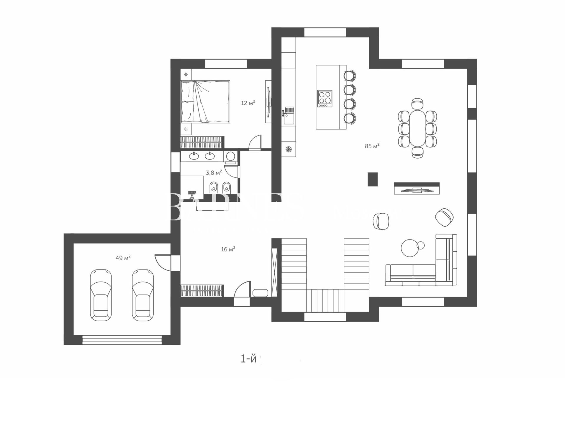 Внутри выполнена предчистовая отделка white box — идеальный холст для вашего дизайн-проекта. Планировка продумана до мелочей: четыре уютные спальни, кабинет и просторная зона кухни-гостиной с панорамными окнами для теплых семейных вечеров.