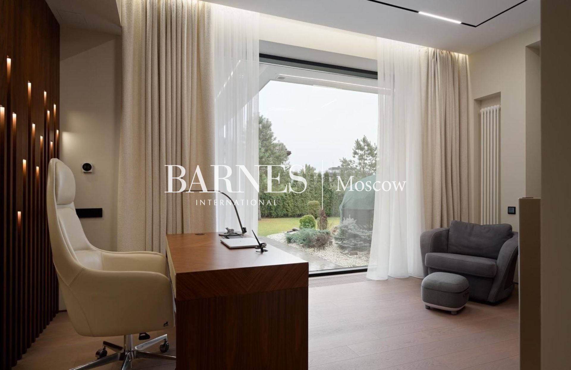 Дом оснащен системой «Умный дом», приточно-вытяжной вентиляцией, центральным кондиционированием и подогревом полов. Для автомобилей предусмотрен теплый гараж на 2 машино-места и площадка у дома еще на 4 автомобиля.