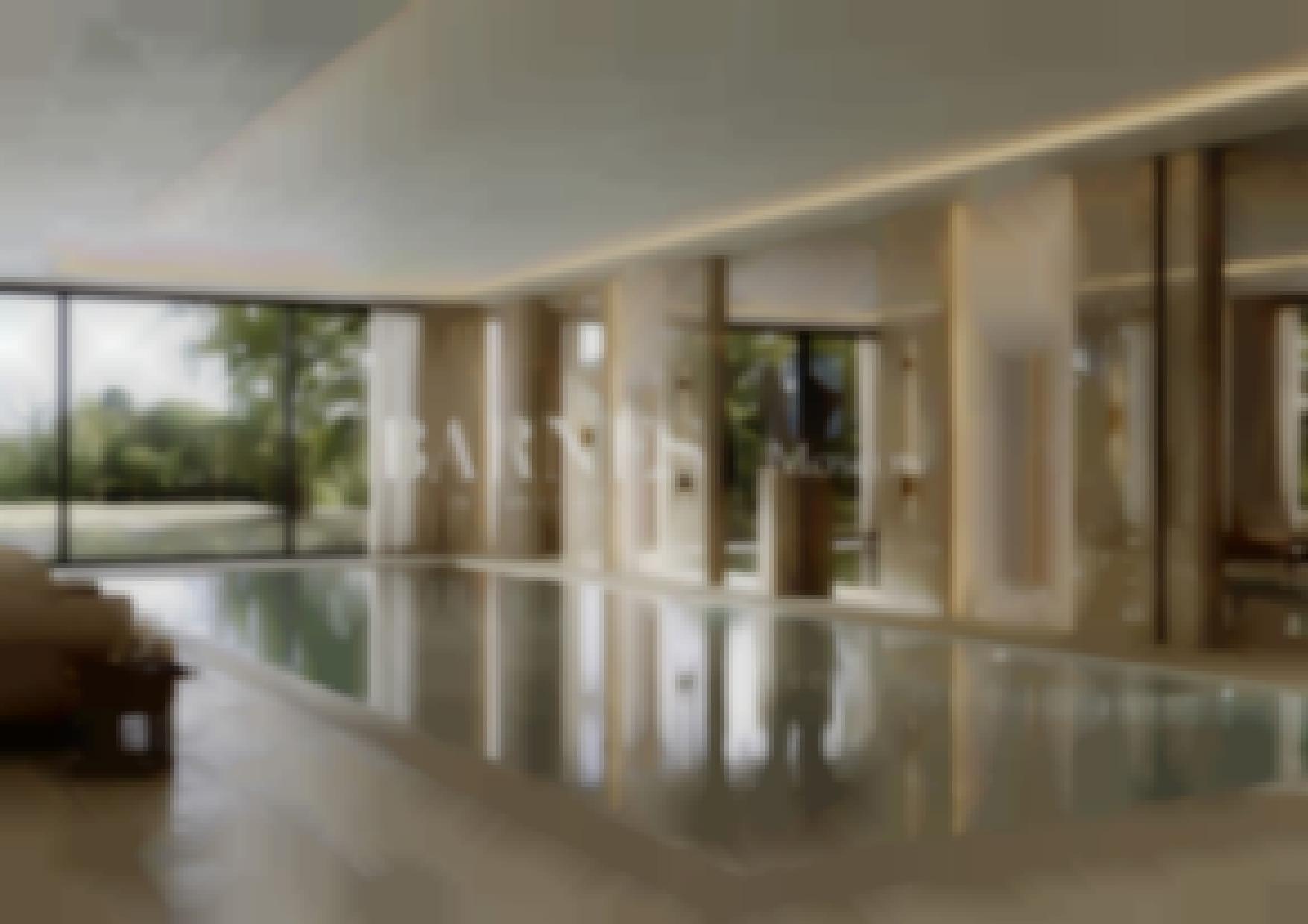Интегрирована система «умный дом». Для вашего комфорта предусмотрено: двусветная гостиная с камином, кухня, столовая, тренажерный зал, СПА‑зона с бассейном, сауной и душевой, пять спален с индивидуальными гардеробными и санузлами, кабинет, блок для персонала, рабочая кухня, гараж на три машино‑места.