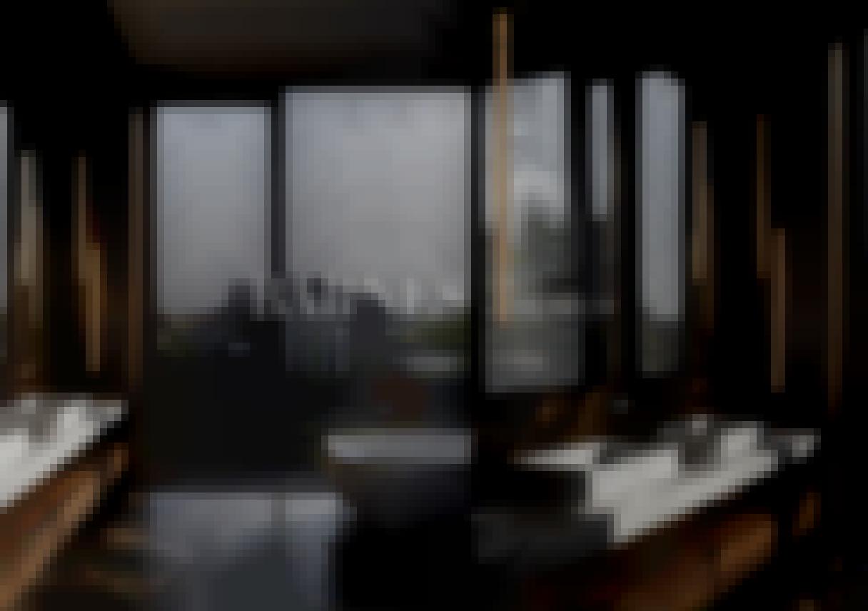Во внешней отделке дома предпочтение отдано технологичным и не требующим ухода материалам, таким как композит, HPL-панели и керамогранит; во внутренней — натуральным: итальянскому мрамору, шпону из моренного дуба и зеркальным панелям.