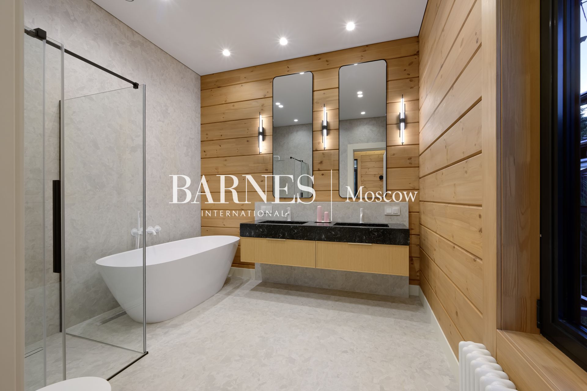 Расположенный всего в 17 километрах от МКАД по Рублево-Успенскому шоссе, дом предлагает удобную транспортную доступность. Вблизи находятся престижные образовательные учреждения, бутики и рестораны, а также живописные парки и леса, которые станут идеальным местом для прогулок и отдыха на свежем воздухе. Центральное газовое отопление и водоснабжение обеспечивают высокий уровень комфорта и удобства.