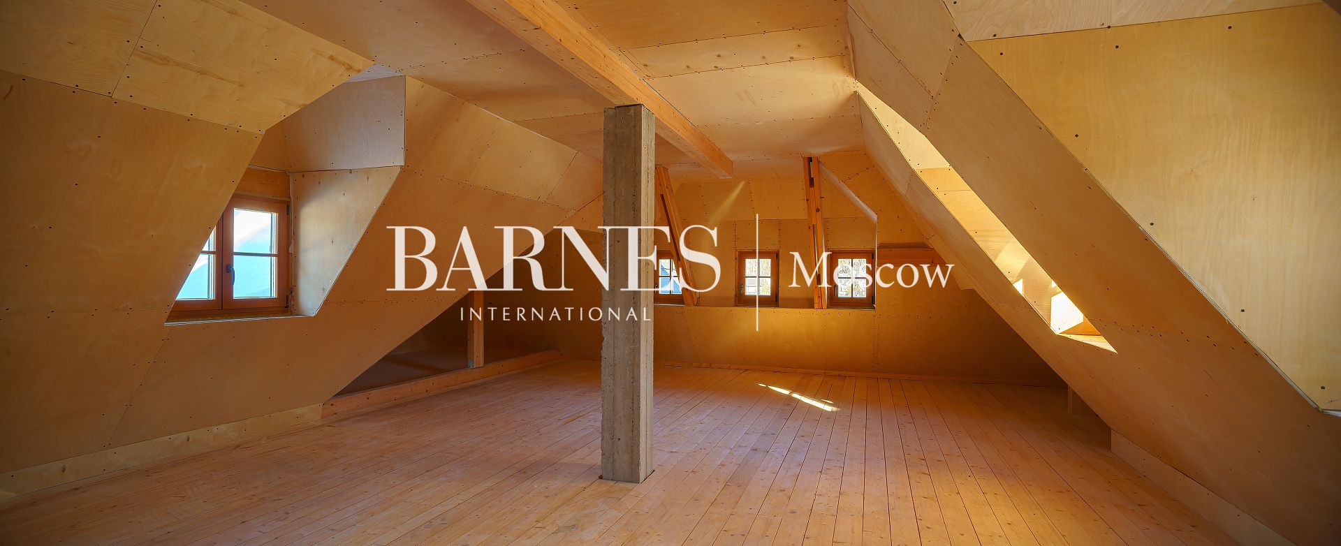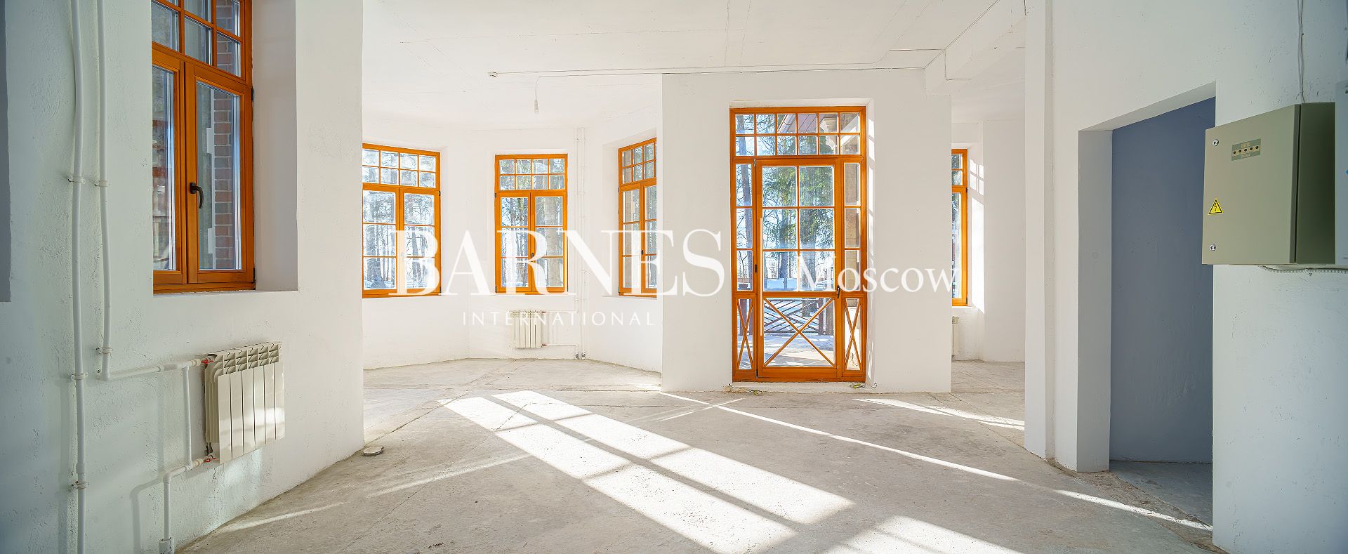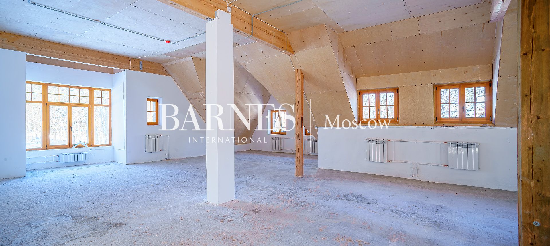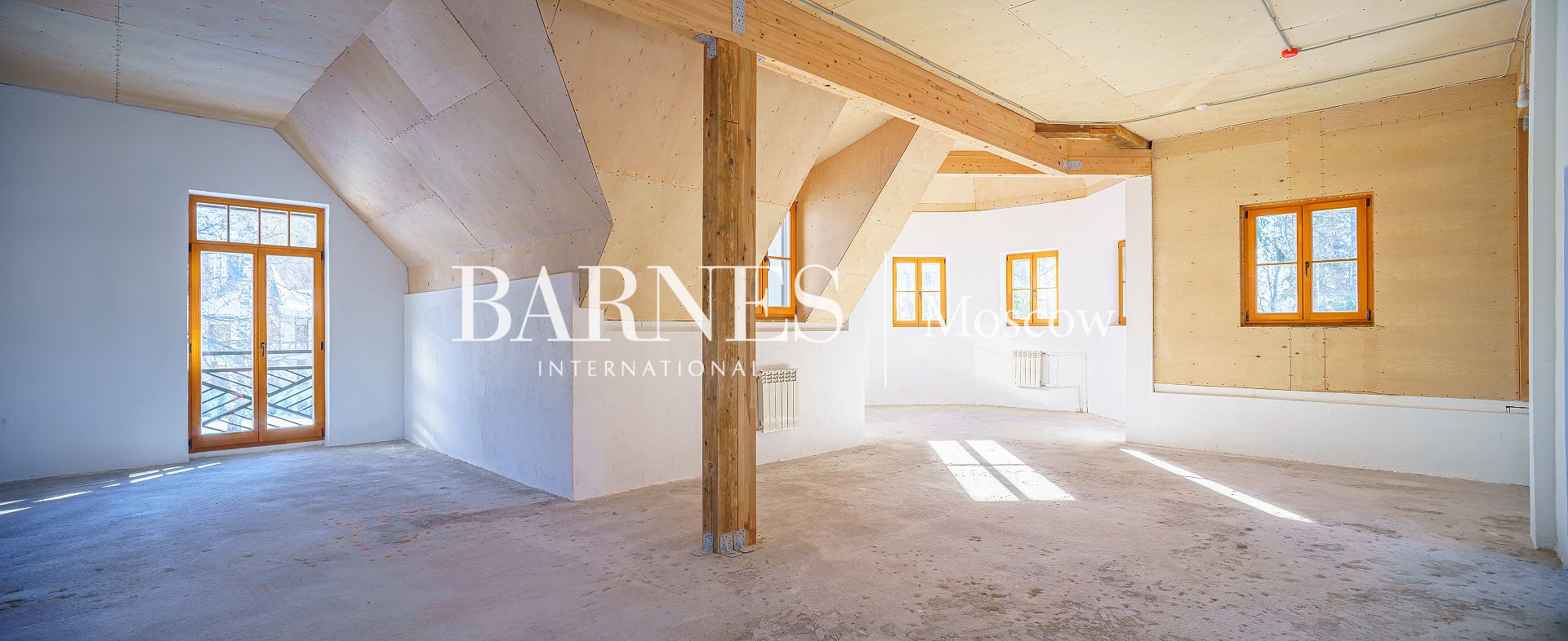 Внутри - 400 м2 эргономичного пространства, где форма следует за комфортом: - Круглая столовая в башне на первом этаже и мастер-спальня над ней - это сердце дома. - Впечатляющий объем мансарды (49 м2) идеален под кабинет с видом на кроны или просторную детскую. - Продуманная навигация: кухня отделена от столовой, гостиная соседствует с кабинетом (который легко может стать гостевой спальней).