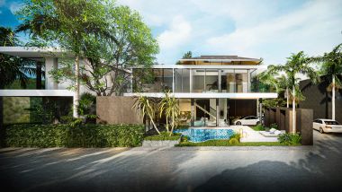 40 современных вилл недалеко от пляжа с 3-4 спальнями, светлой гостиной, западной кухней с островом и барной стойкой. Частный бассейн с террасой и парковкой.