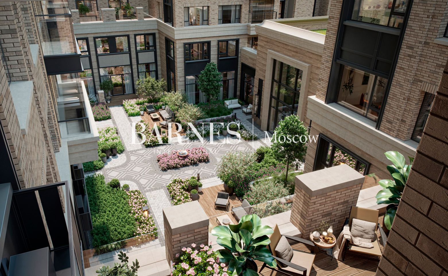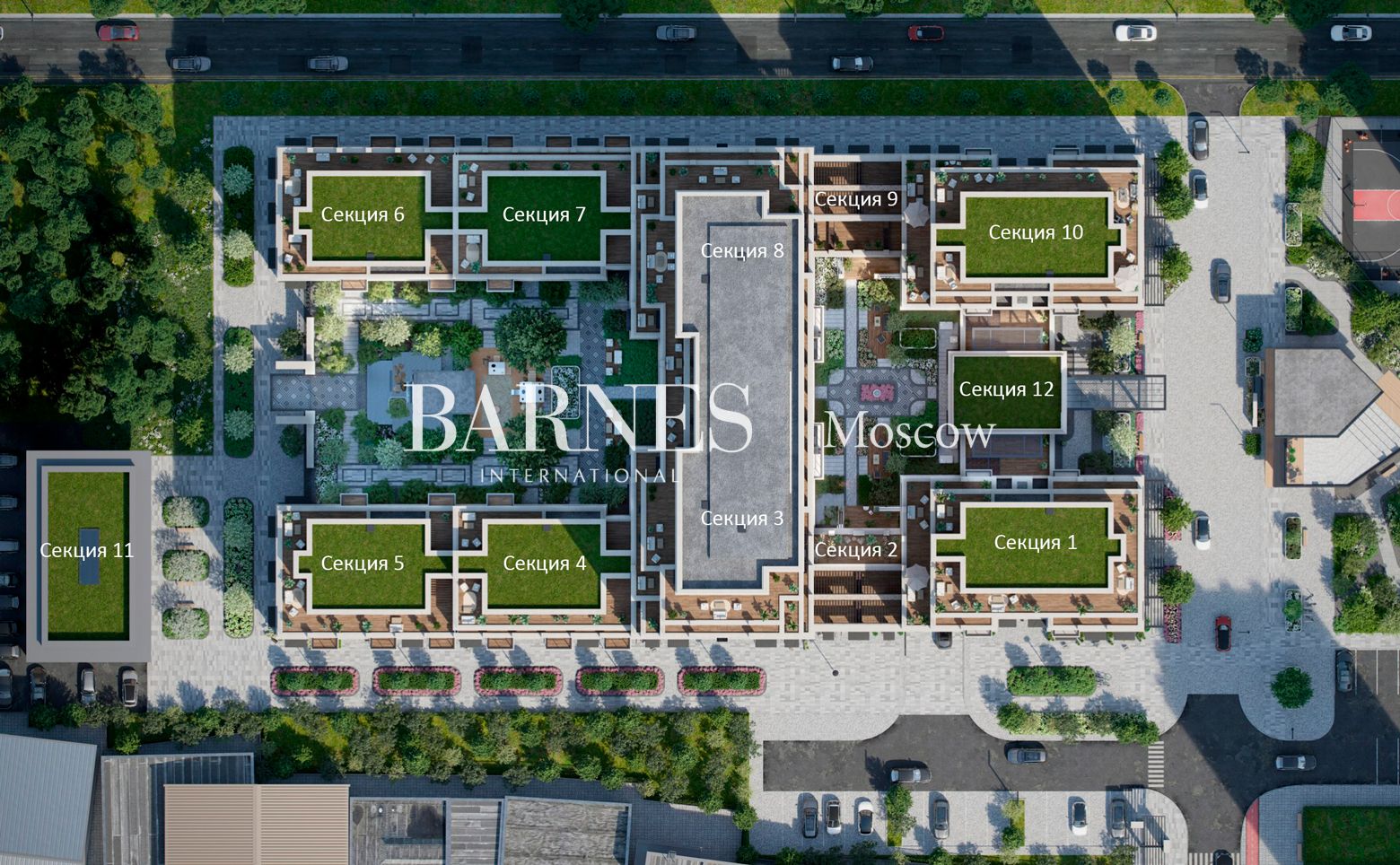 Комплекс имеет 2 приватных двора: один с гостевой и зонами для отдыха под открытым небом, второй — с детскими, игровыми и спортивными площадками. На крыше лобби спроектированы общественные террасы с зимним садом и чайной. В инфраструктуру проекта входят 2 павильона с кафетерием и детским клубом, фитнес-студия, ресторан и винотека. Для автомобилей в комплексе предусмотрен подземный паркинг.