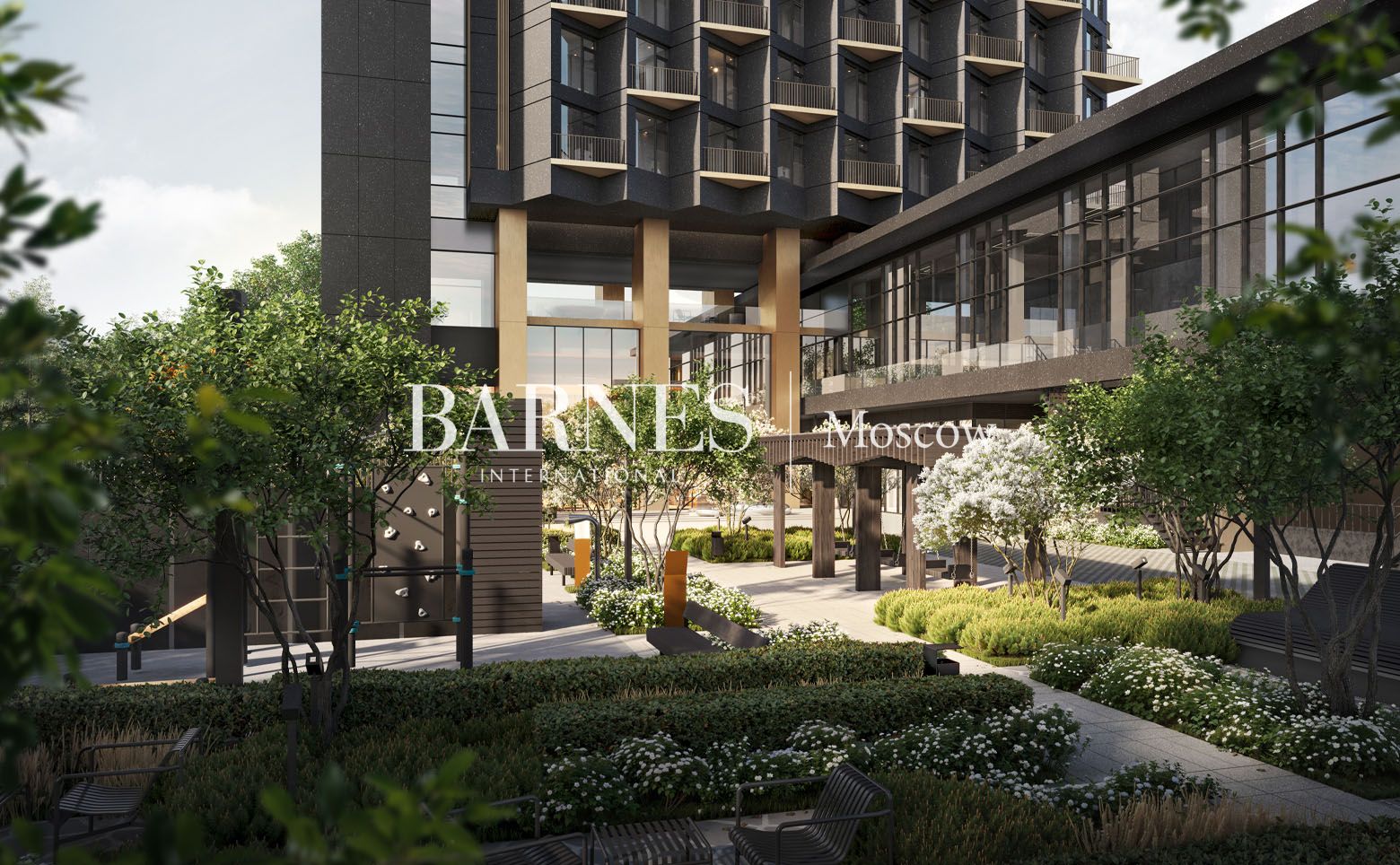 Инфраструктура: двухуровневый подземный паркинг на 111 машино-мест + 5 мото-мест с зарядными станциями для электромобилей, входная группа с 7-метровыми потолками и зоной drop-off, парадное лобби из натурального камня, дерева и терраццо, авторская люстра, премиальные лифты (включая двусторонний лифт с прямым выходом на улицу), комнаты хранения (сити-боксы), консьерж-сервис.