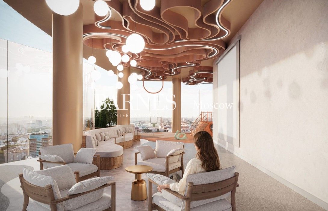 Элегантное и стильное лобби с лаундж-гостиной, переговорной, детской комнатой, бьюти-зоной и приватным фитнес-клубом.
