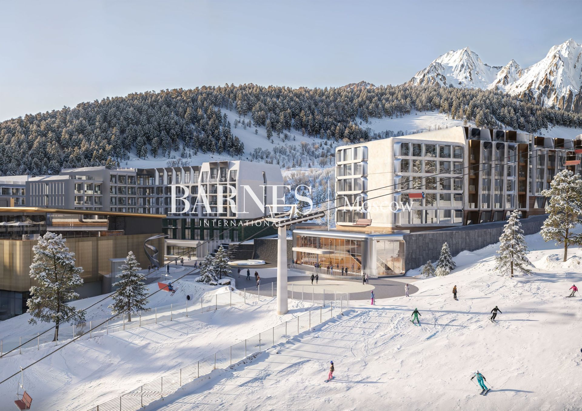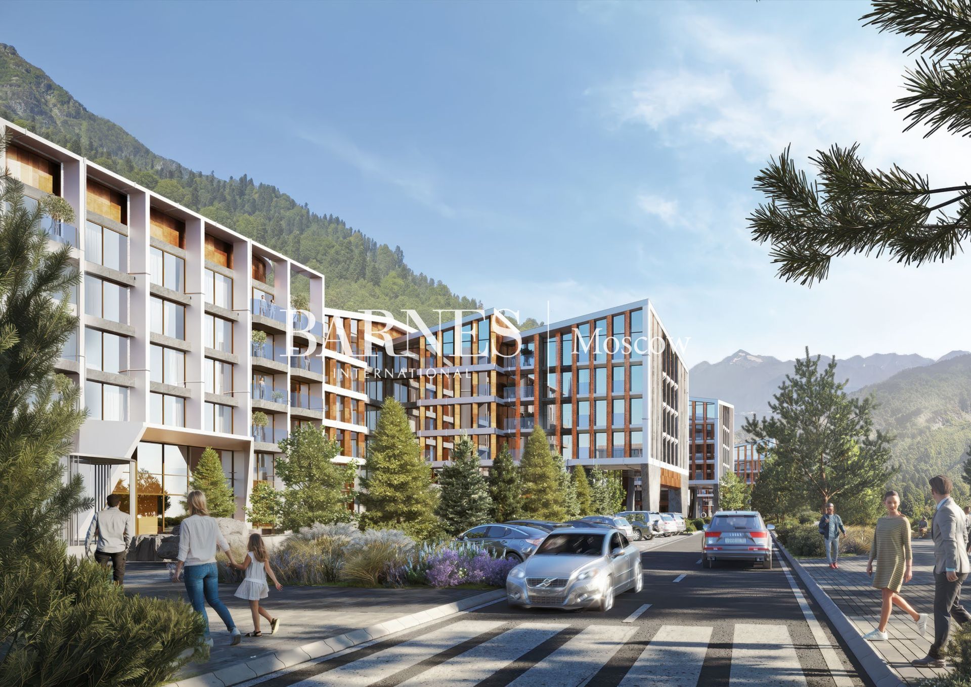 Во всех лотах будет панорамное остекление, чтобы любоваться неповторимыми пейзажами, и индивидуальный ски-рум — помещение для сушки и хранения горнолыжных костюмов и снаряжения. Интерьеры в стиле альпийского минимализма выполнены в теплых тонах, с отделкой из натурального дерева, мягких текстильных покрытий и керамики с рельефными узорами.