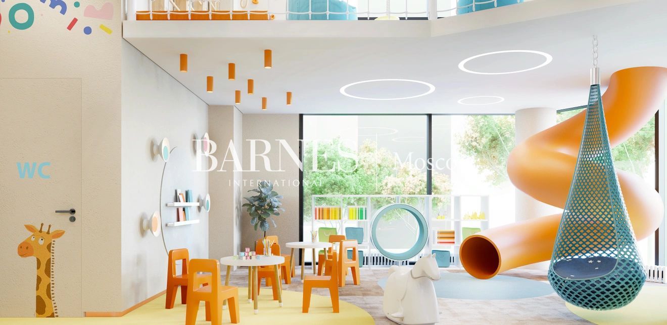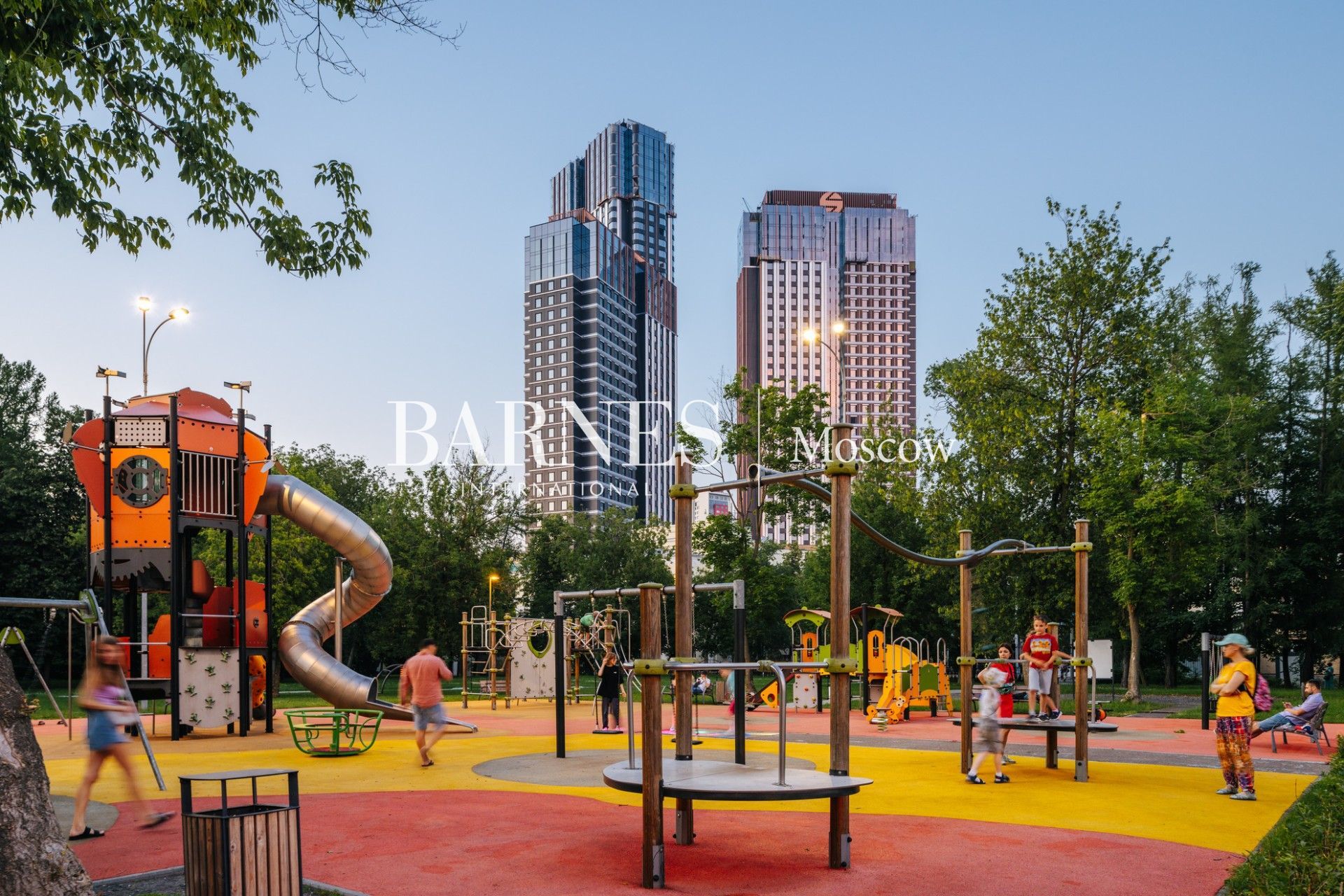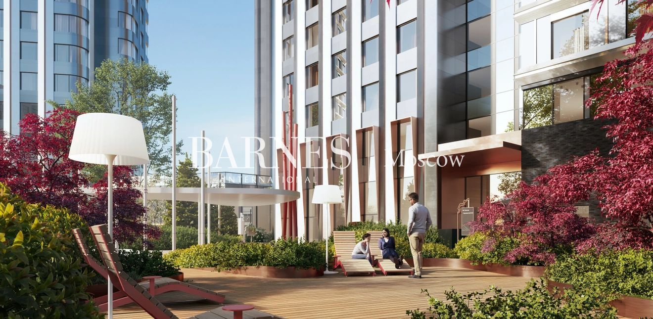 Закрытая и благоустроенная территория с ландшафтным дизайном, детскими и спортивными площадками, зонами отдыха с качелями и шезлонгами. Предусмотрены скамейки, шезлонги, пуфы и качели для отдыха. Предусмотрен двухуровневый паркинг на 427 мест с прямым доступом из квартир и проездом фургонов для комфортной доставки крупногабаритных грузов прямо к лифту. Круглосуточное видеонаблюдение; доступ в комплекс осуществляется по bluetooth-метке. Внутренняя инфраструктура включает кофейню, магазины, аптеку, салоны красоты и различные сервисные службы.